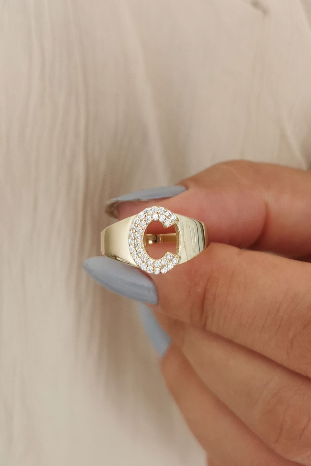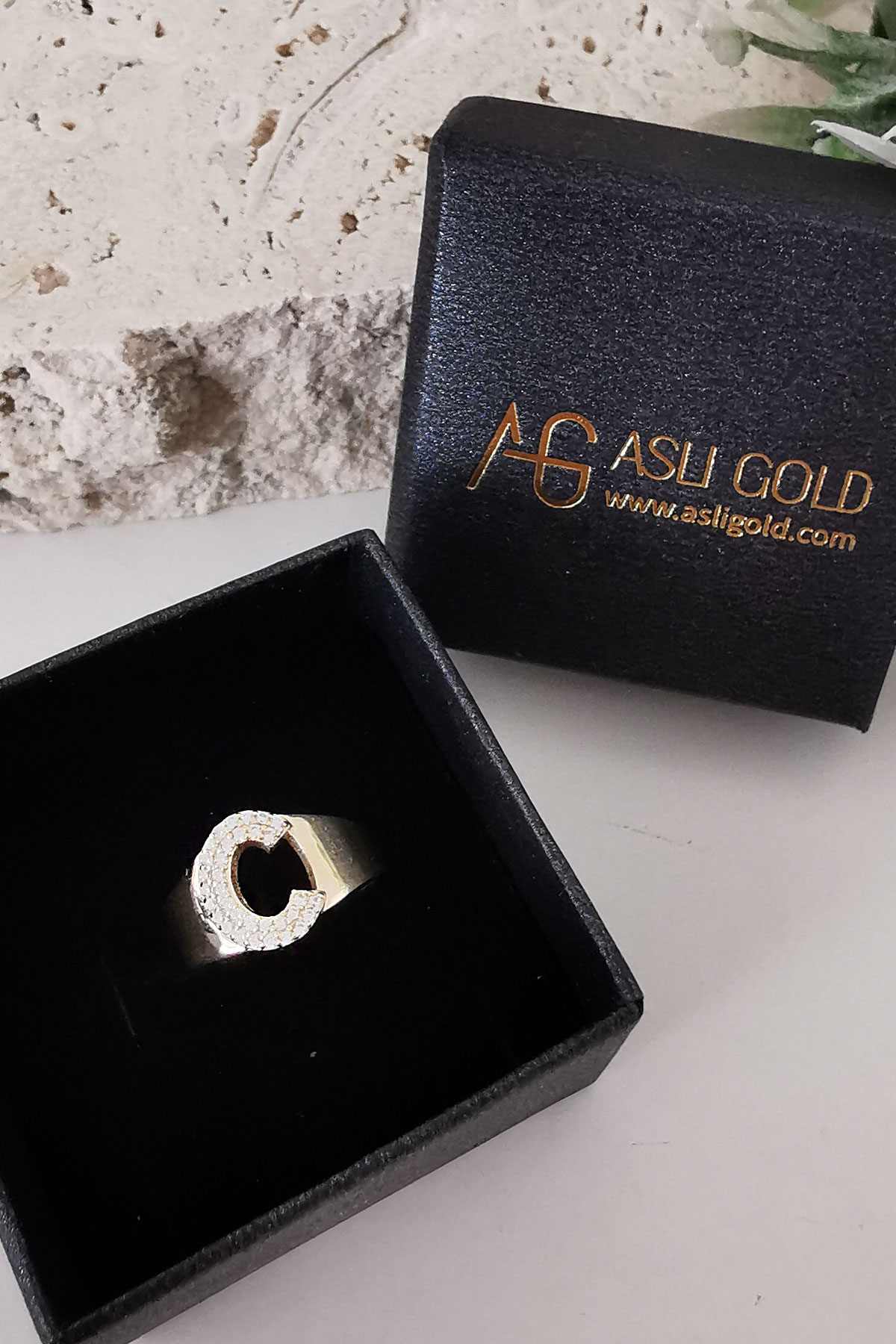 14 Ayar Altın Sezon Modası C Harf Yüzük İle Sizde Sevdiklerinizin Yada Kendi İsminizin Baş Harfini Parmağınızda Taşıyın!