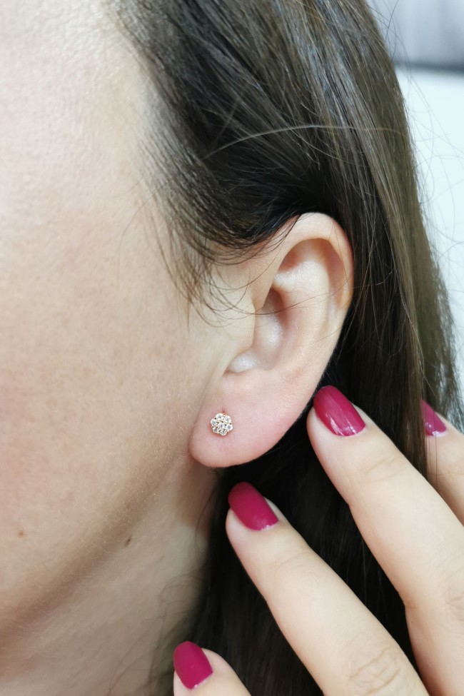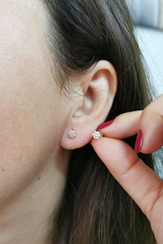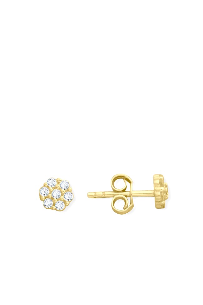 0.5 Cm boyunda zirkon taşlı minimal ışıl ışıl 14 ayar 0.90 gr ağırlığında altın taşlı çiçek model vidalı küpe.