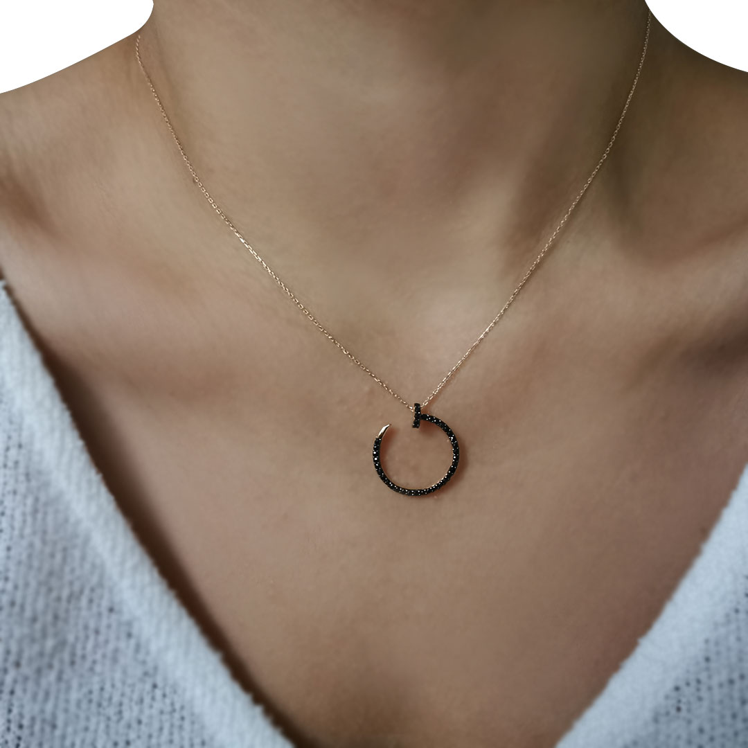 45 Cm zincirli 2.15 gr. 1.5 cm boyutunda zarif model 14 ayar altın şık ve minimal duruşa sahip siyah taşlı çivi kolye.
