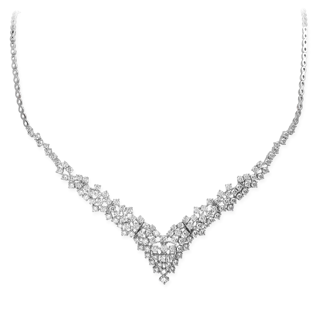 14 Ayar Işıl Işıl Şık Bir Modele Sahip Beyaz Altın 18.90 Gram Ağırlığında Işık Seli Zirkon Taşlı Gösterişli Gerdanlık.