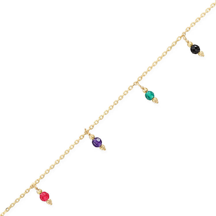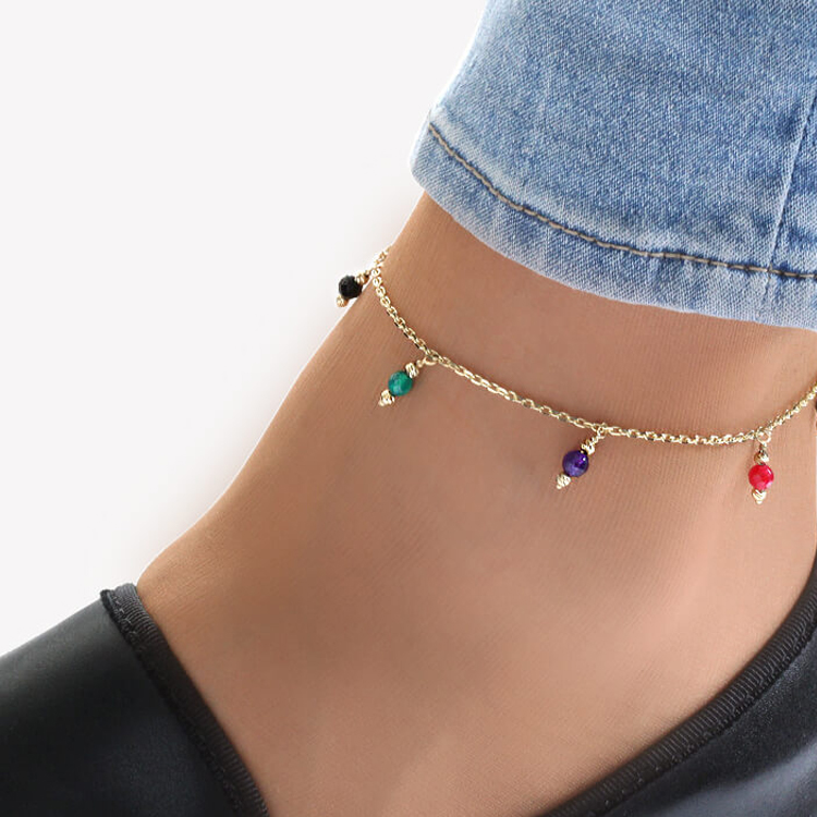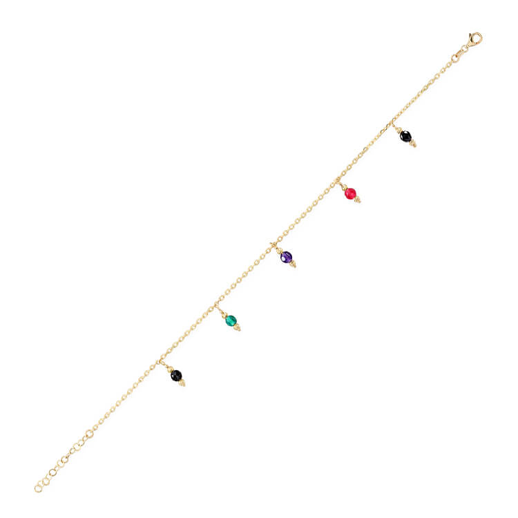 14 Ayar Zincir Üzeri Renkli Taş Detaylı Işıl Işıl Modern Tasarım  2.70 Gr. Ağırlığında Altın Halhal.