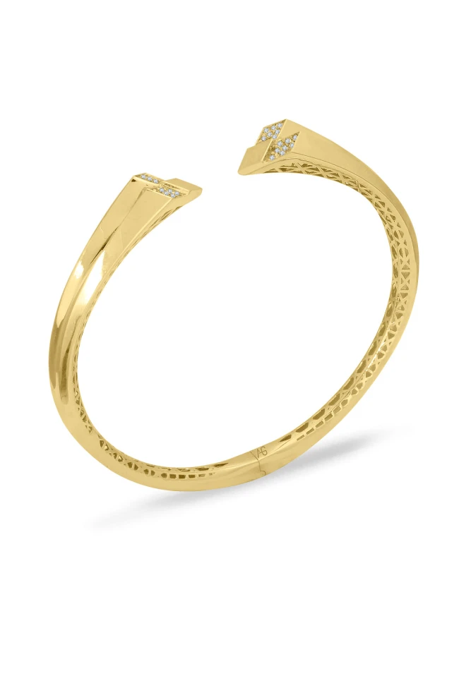 14 Ayar köşeli model şık tasarımı ile gösterişli ve elit duruşa sahip 10.70 gram ağırlığında altın taş detaylı ikonik füzyon bilezik.