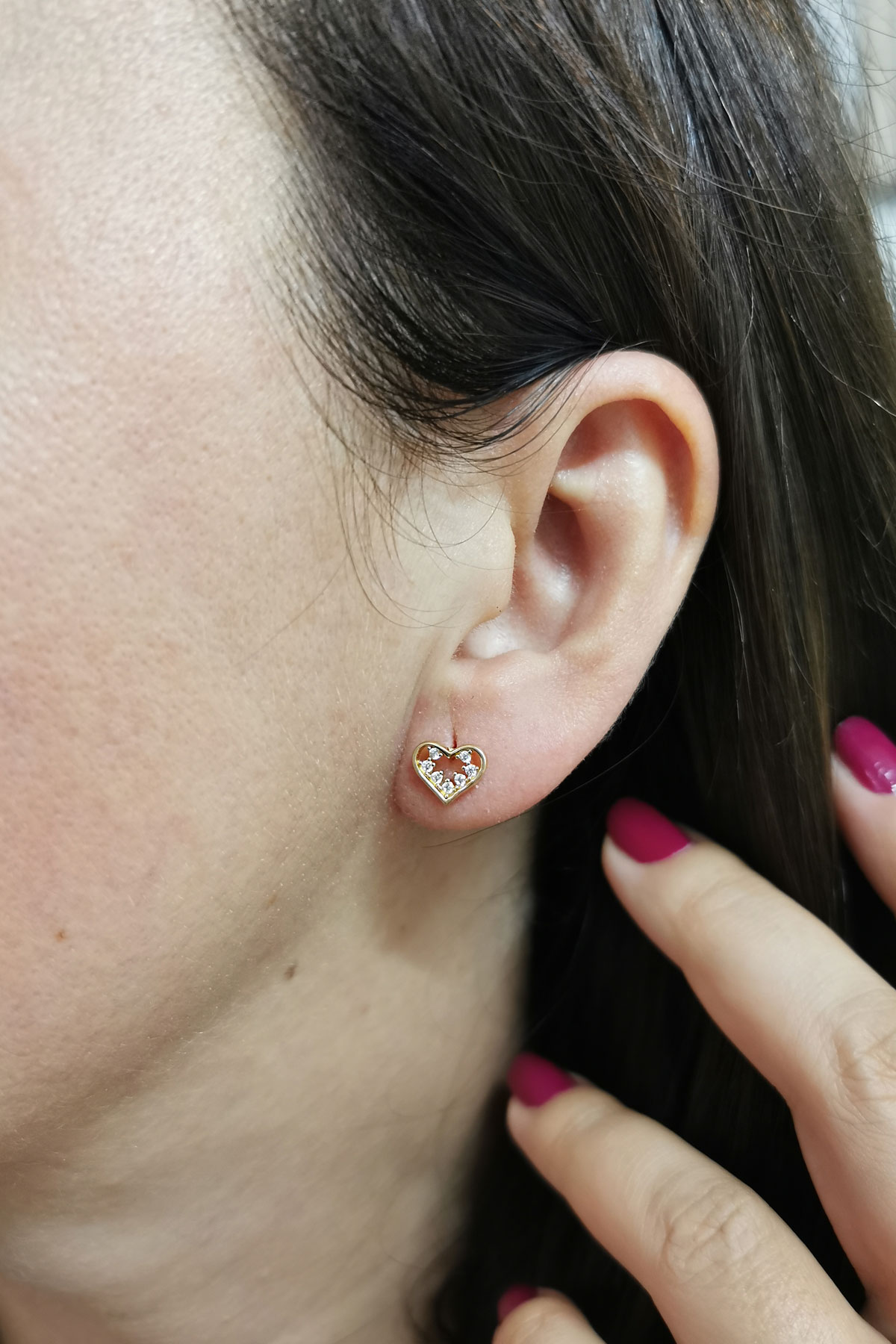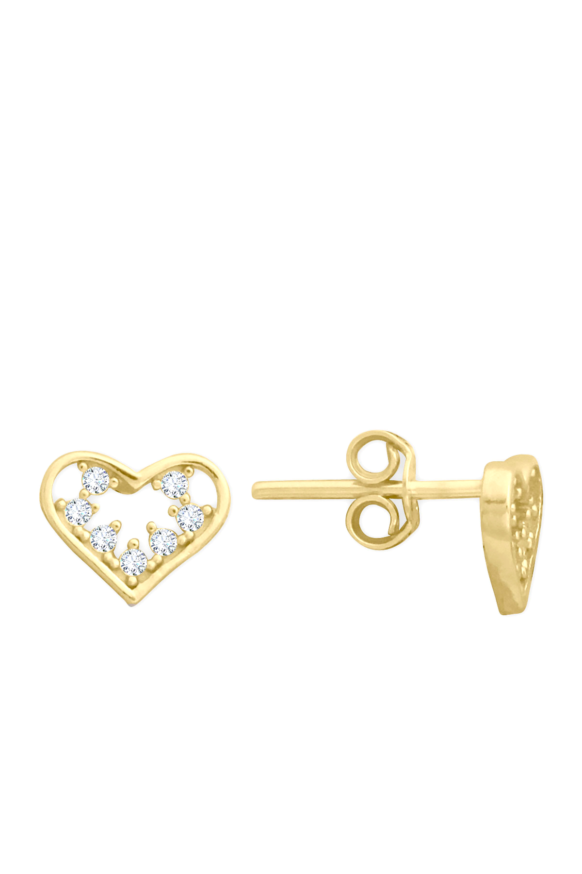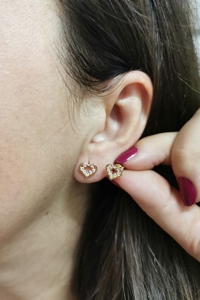 1 Cm boyunda zirkon taşlı minimal ışıl ışıl 14 ayar 1.35 gr ağırlığında altın vidalı kalp model küpe.
