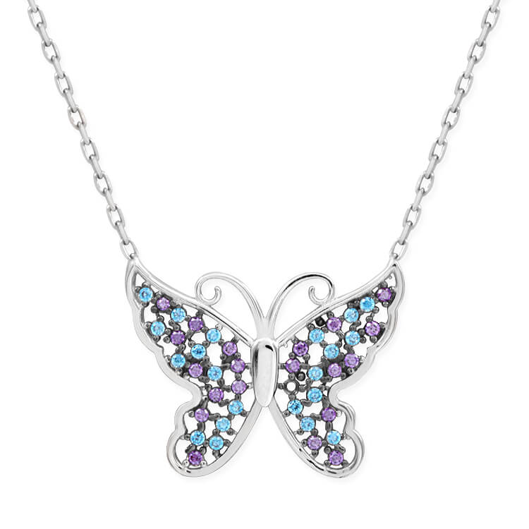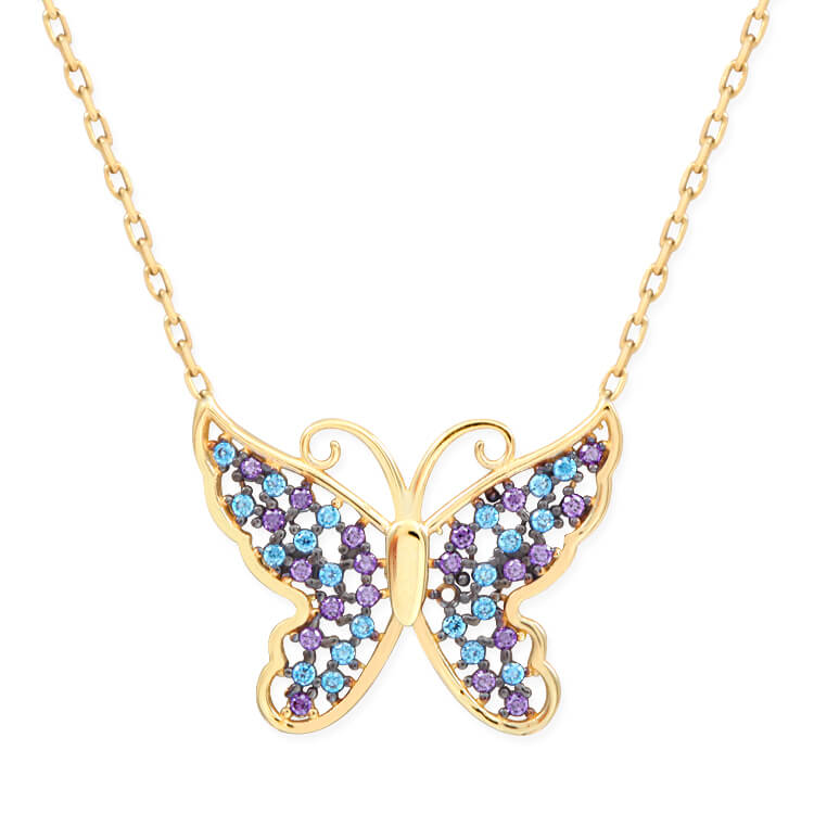 Renkli taşları ile oldukça enerji dolu ve ışıl ışıl bir duruşa sahip kelebek kolye.