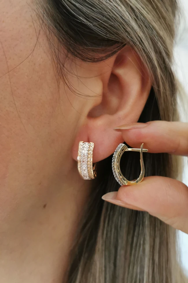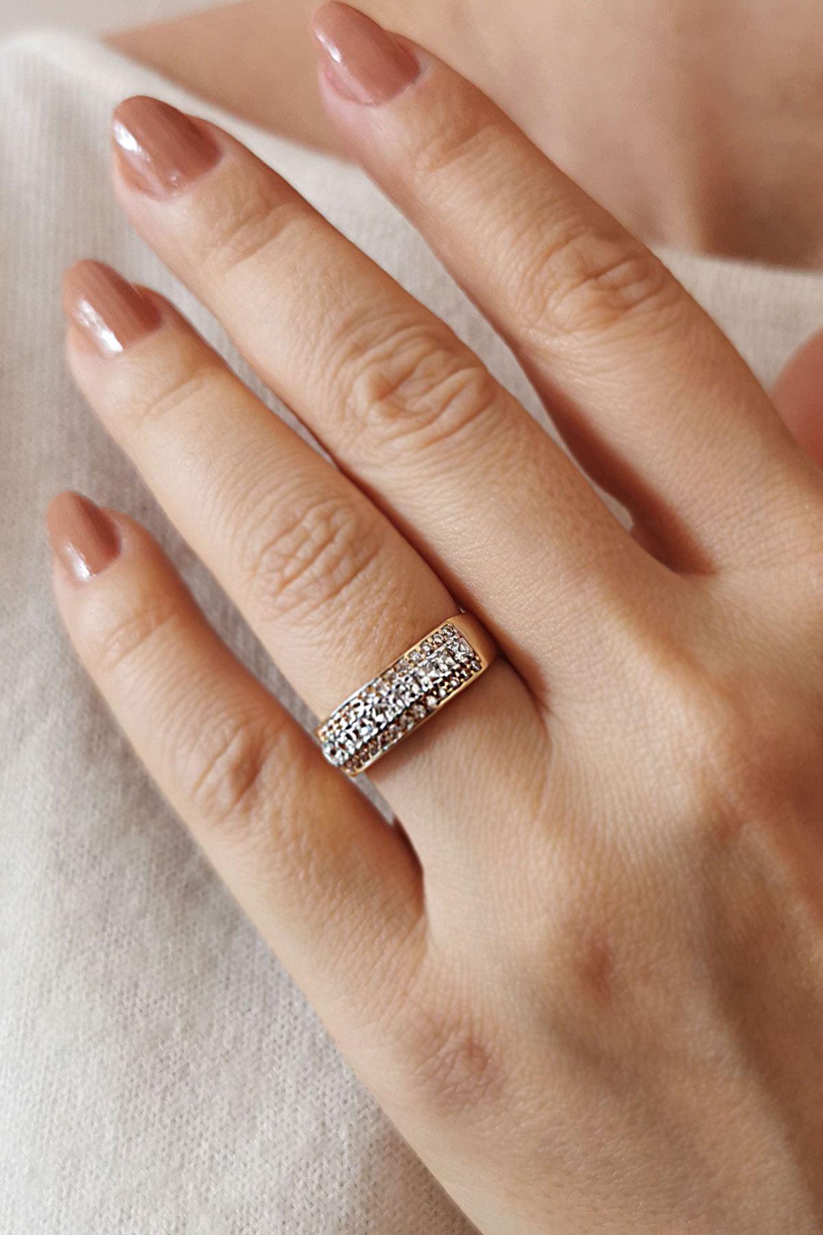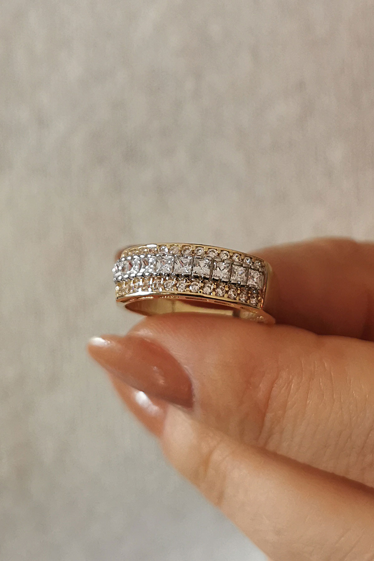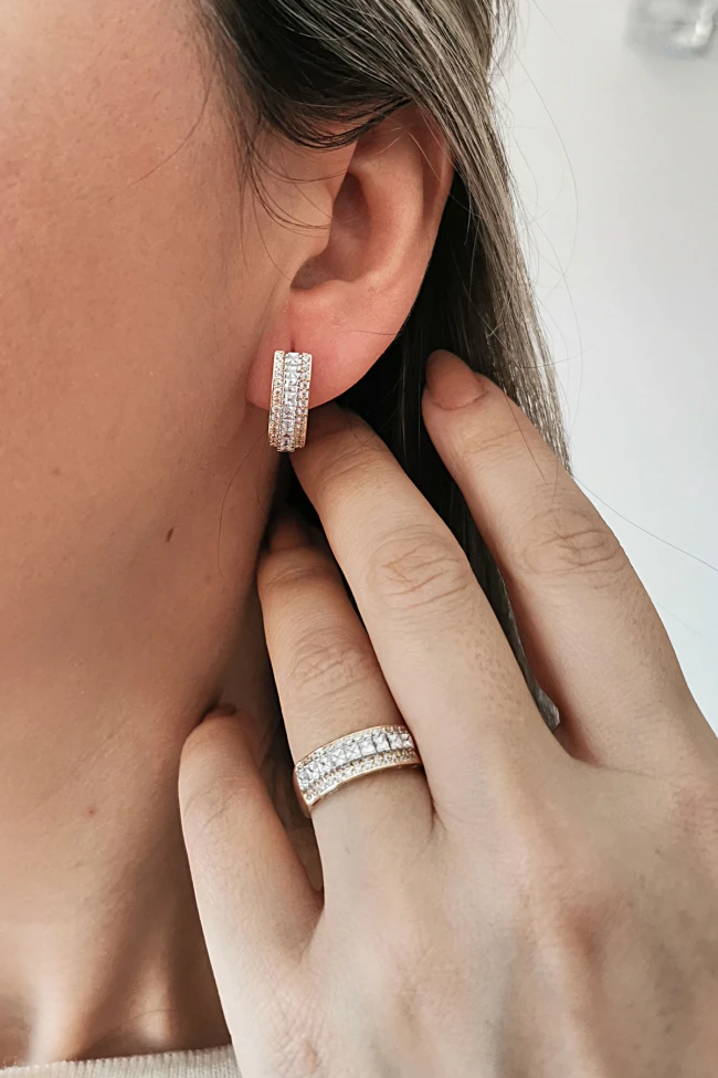 14 Ayar günlük ve şık tasarımı ile spor duruşa da sahip farklı yüzüklerinizle bir arada kombin olarak da kullanıma uygun 7.55 gram ağırlığında taşlı model altın yüzük küpe set.