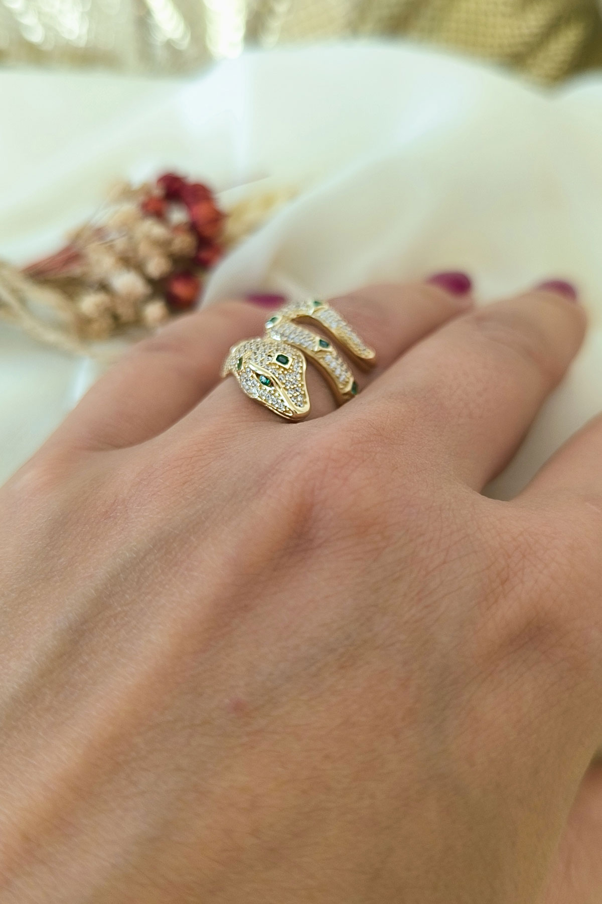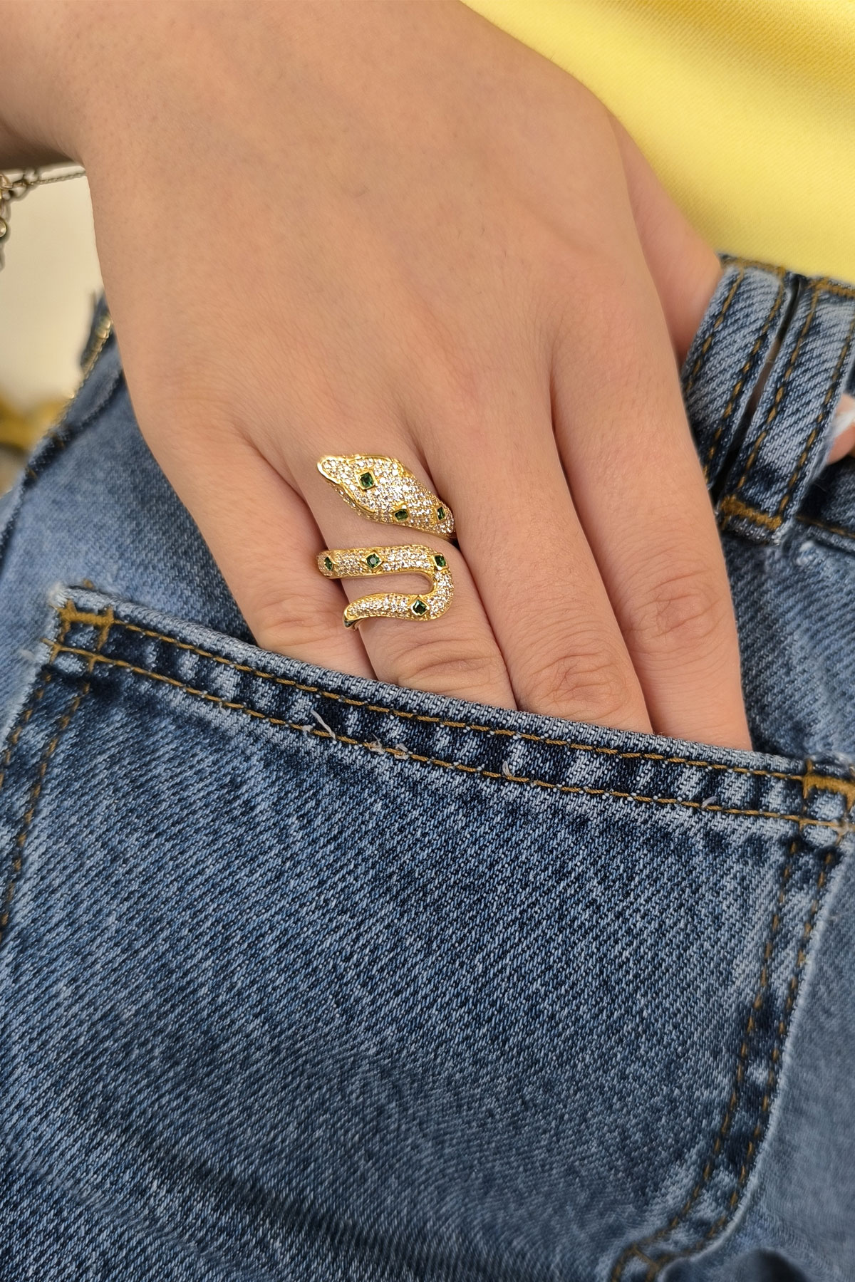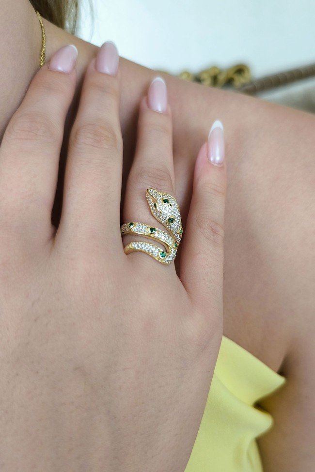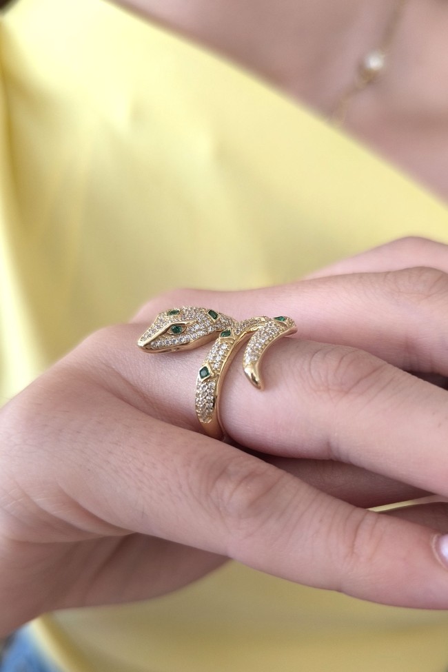 4.75 Gr. Taşlı Işıl Işıl Yılan Modeli İle Şık Modern Ve Günlük Kullanıma Uygun 14 Ayar  Altın Kadın Yüzük.