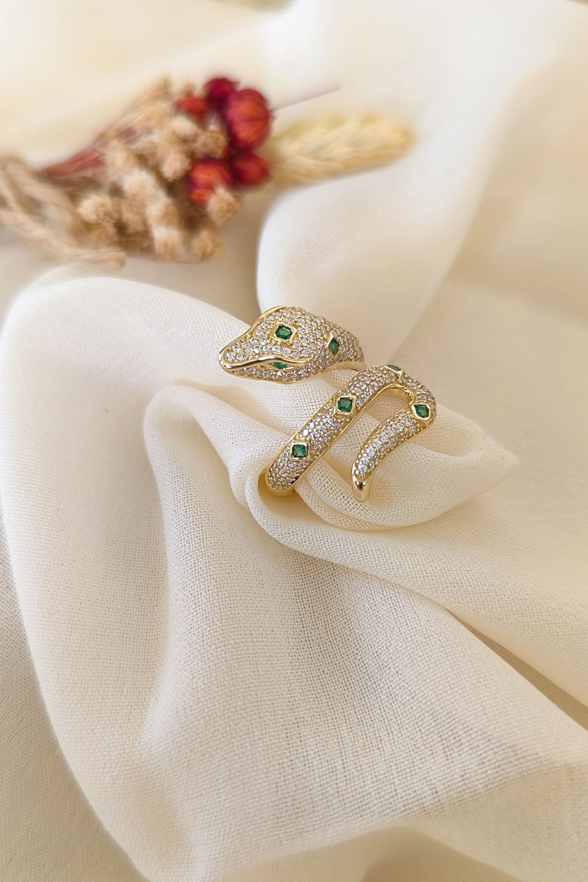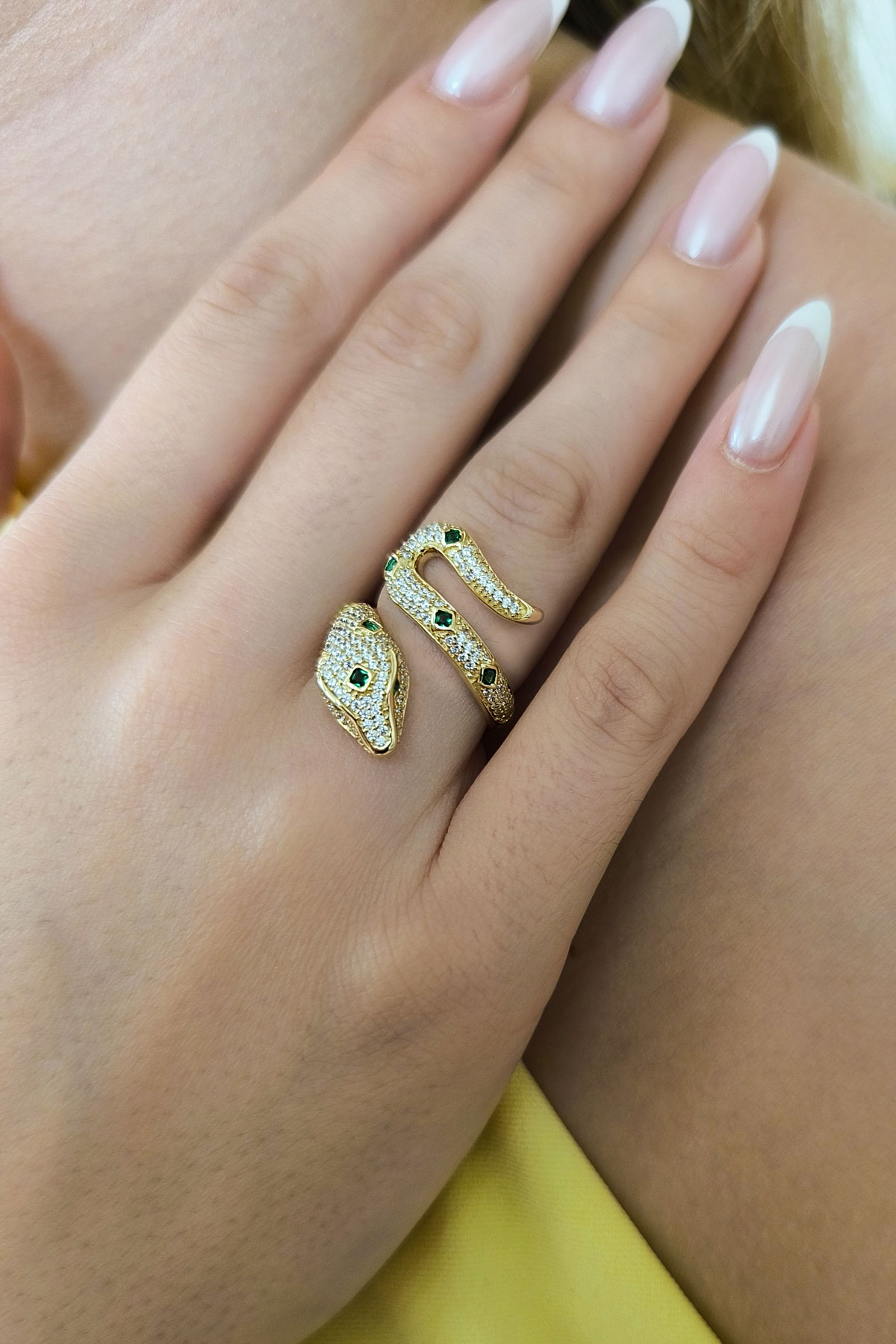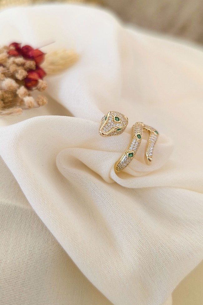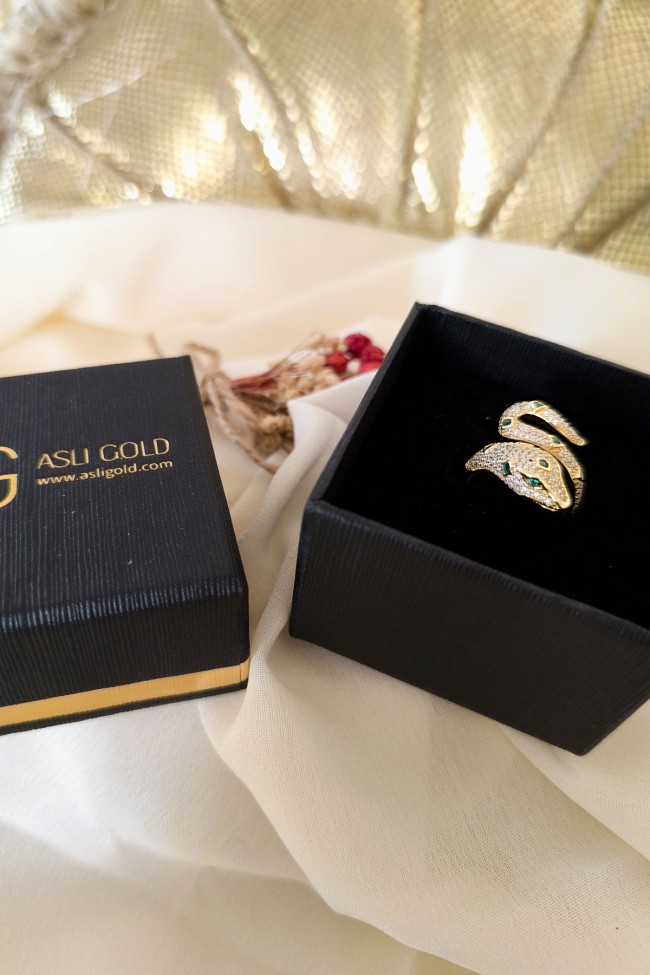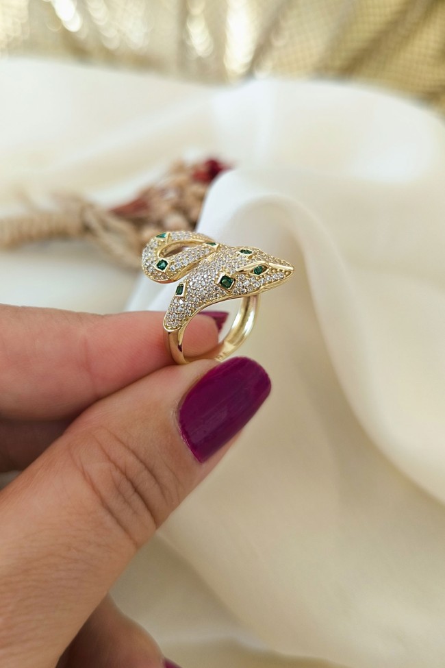 4.75 Gr. Taşlı Işıl Işıl Yılan Modeli İle Şık Modern Ve Günlük Kullanıma Uygun 14 Ayar  Altın Kadın Yüzük.