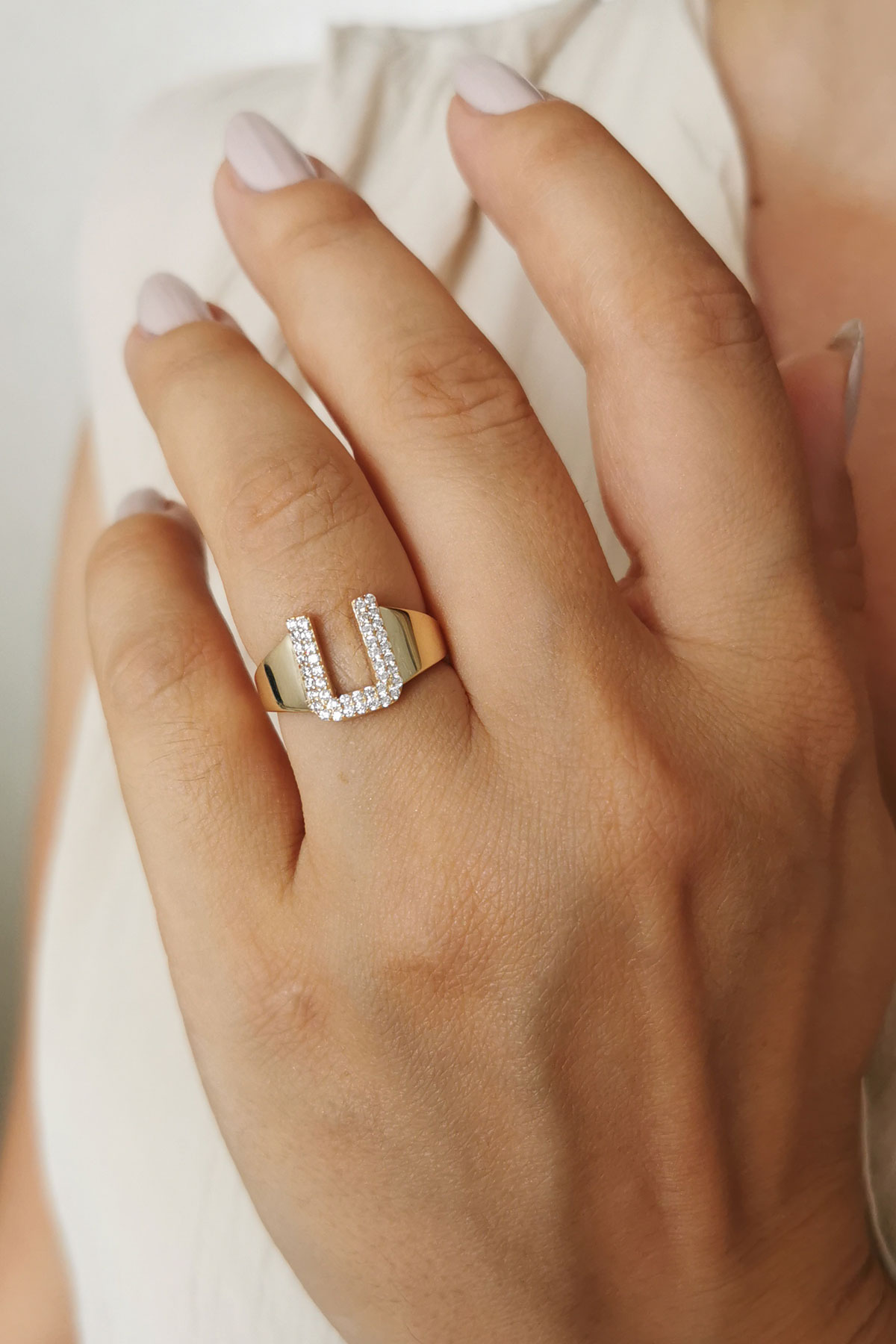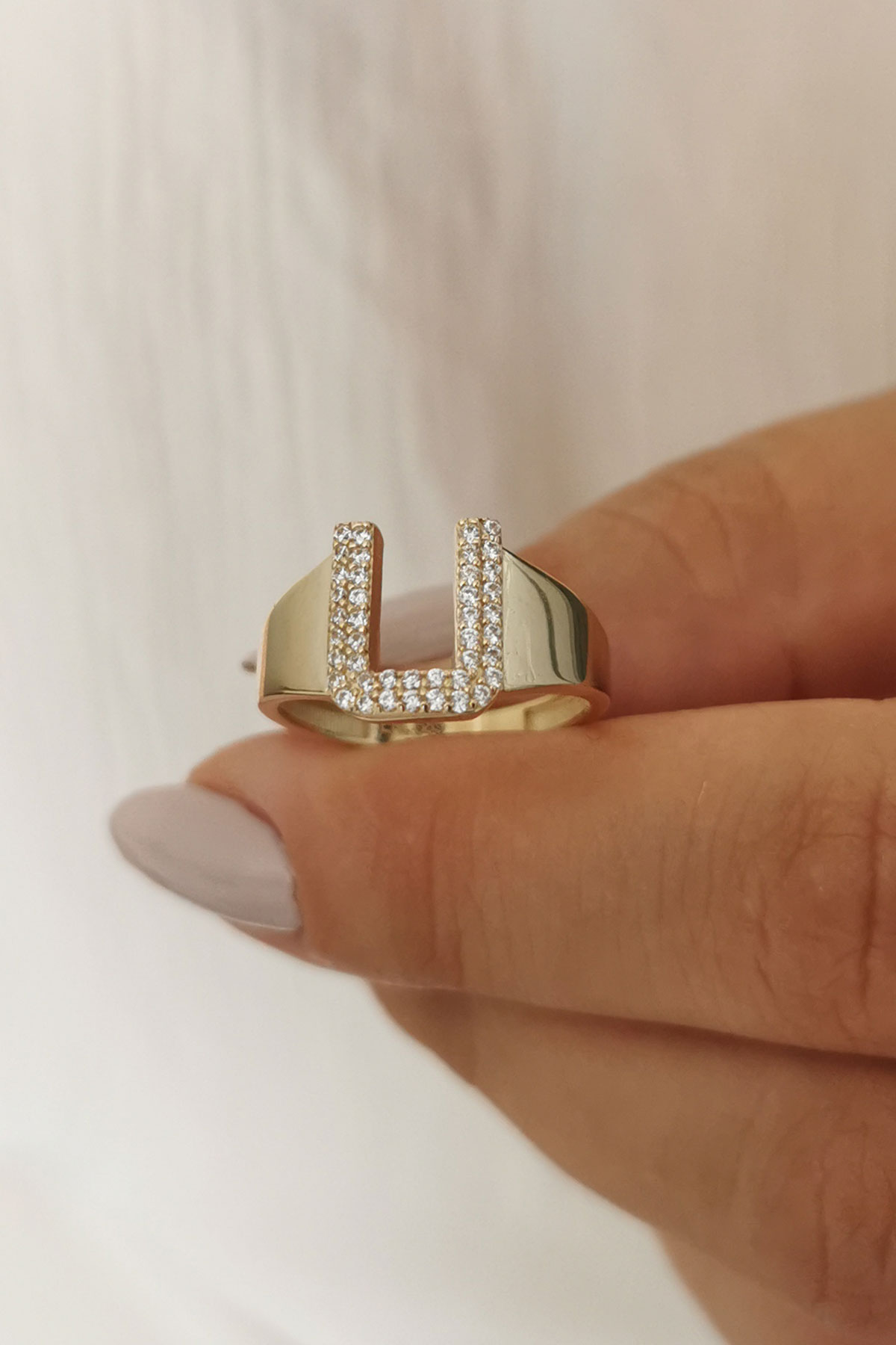 14 Ayar Altın Sezon Modası U Harf Yüzük İle Sizde Sevdiklerinizin Yada Kendi İsminizin Baş Harfini Parmağınızda Taşıyın!