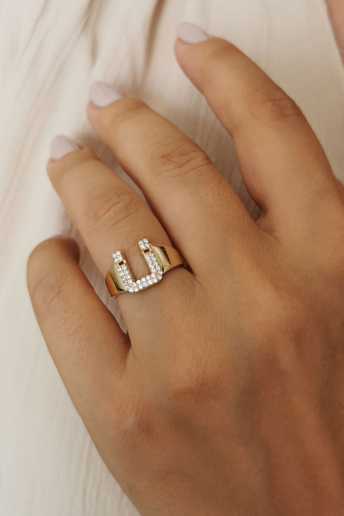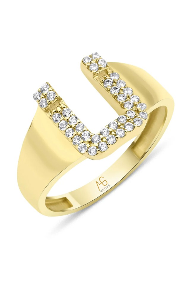 14 Ayar Altın Sezon Modası Ü Harf Yüzük İle Sizde Sevdiklerinizin Yada Kendi İsminizin Baş Harfini Parmağınızda Taşıyın!