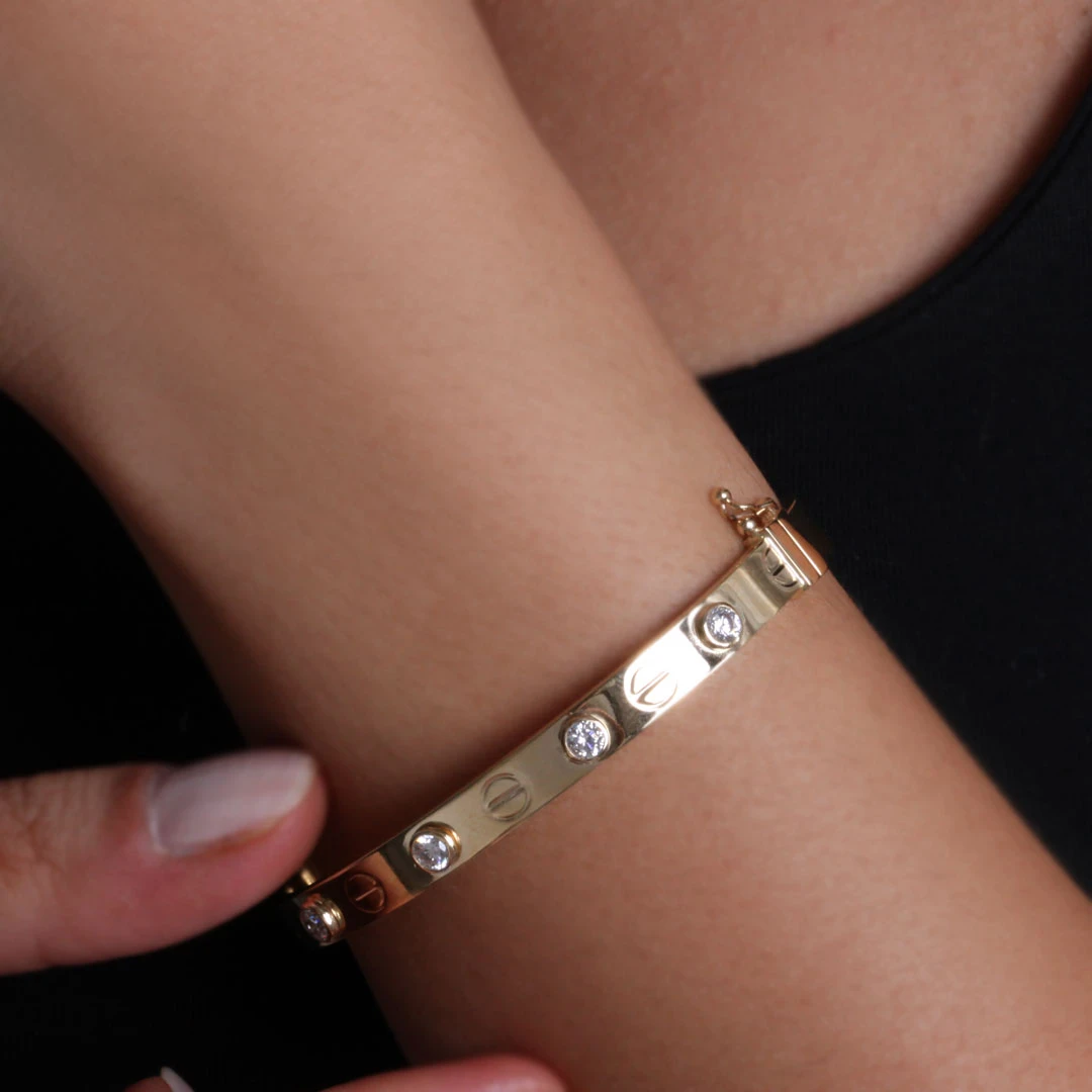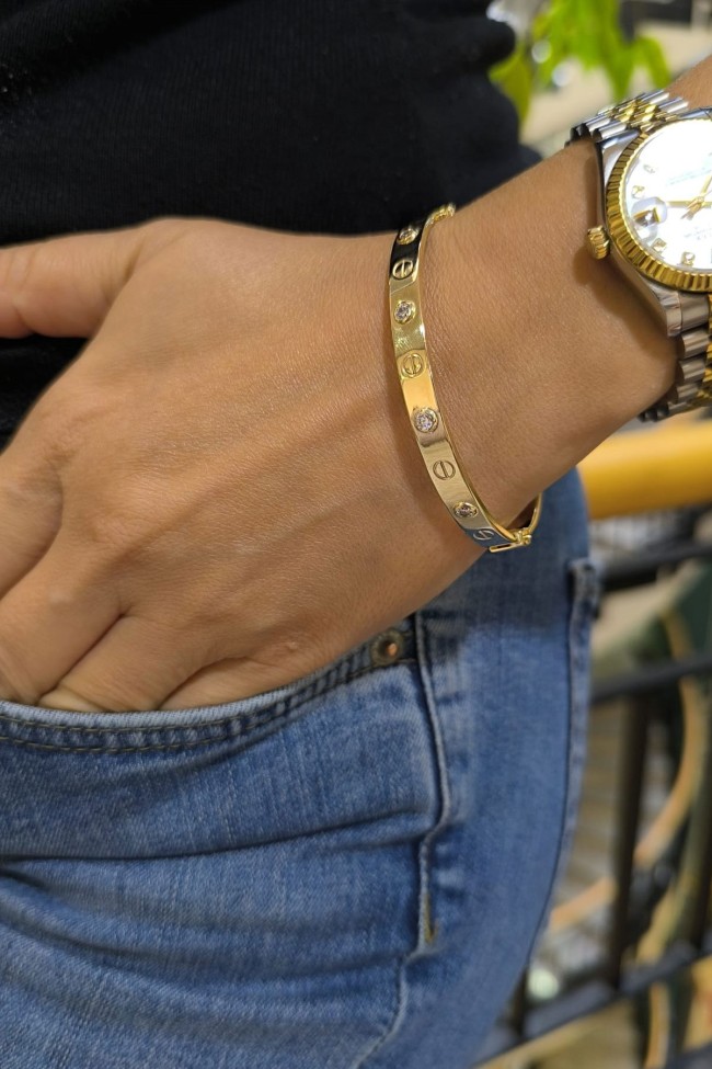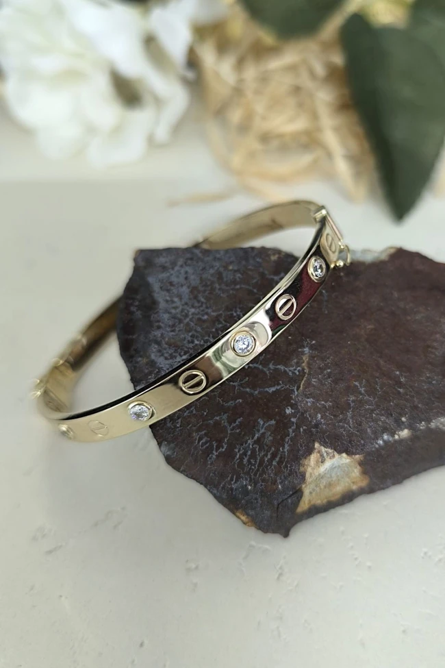 8.10 Gram Ağırlığında 6 Mm Genişliğinde 14 Ayar Zirkon Taşlı Vida Başı Altın Kelepçe Bilezik. Günlük stilinizle kombinleyip severek kullanabilirsiniz, tüm giyim tarzınıza muhteşem uyum sağlar.