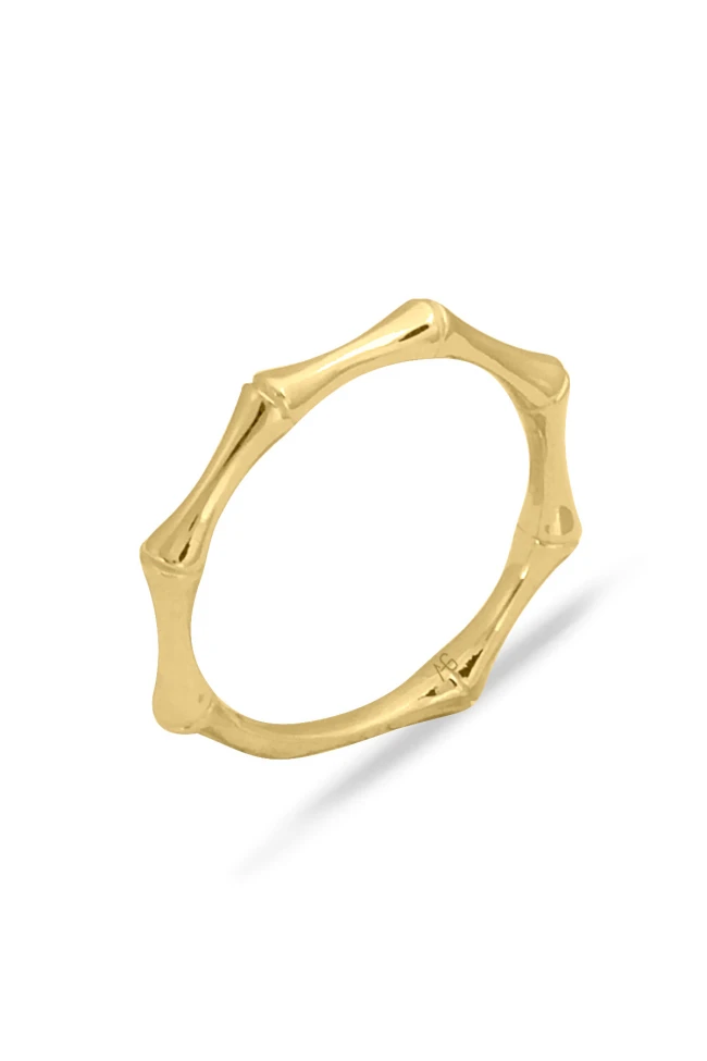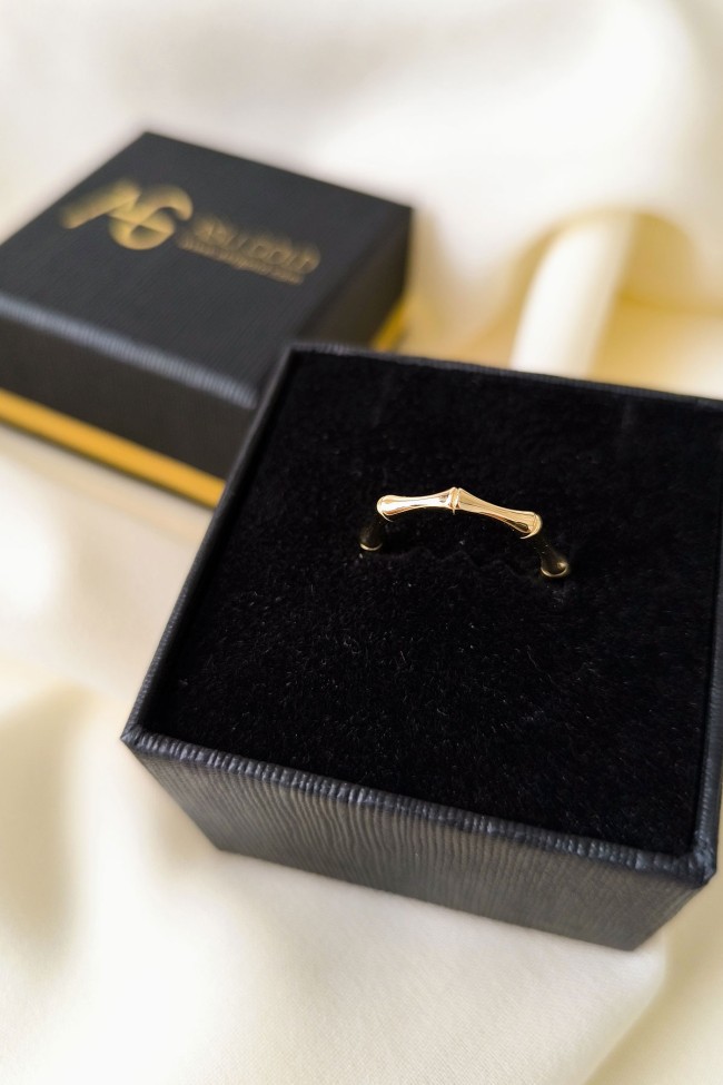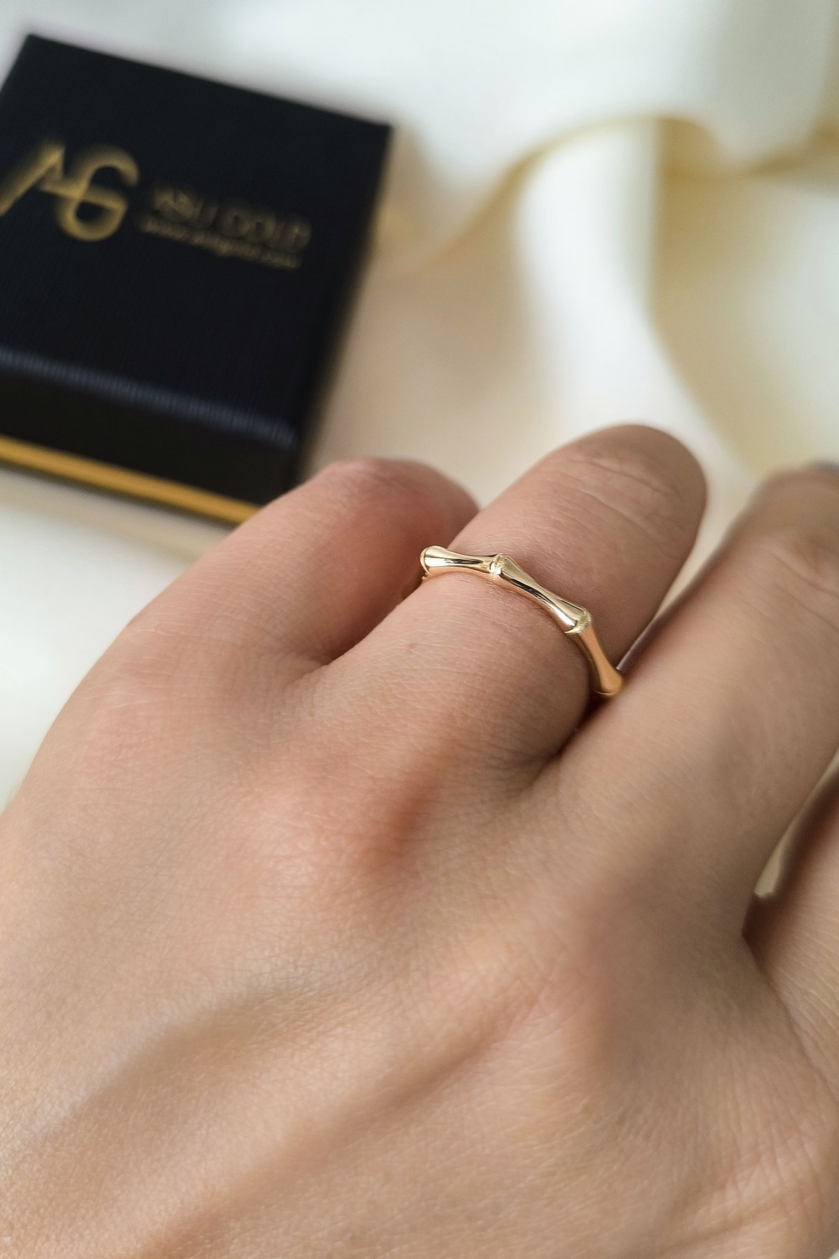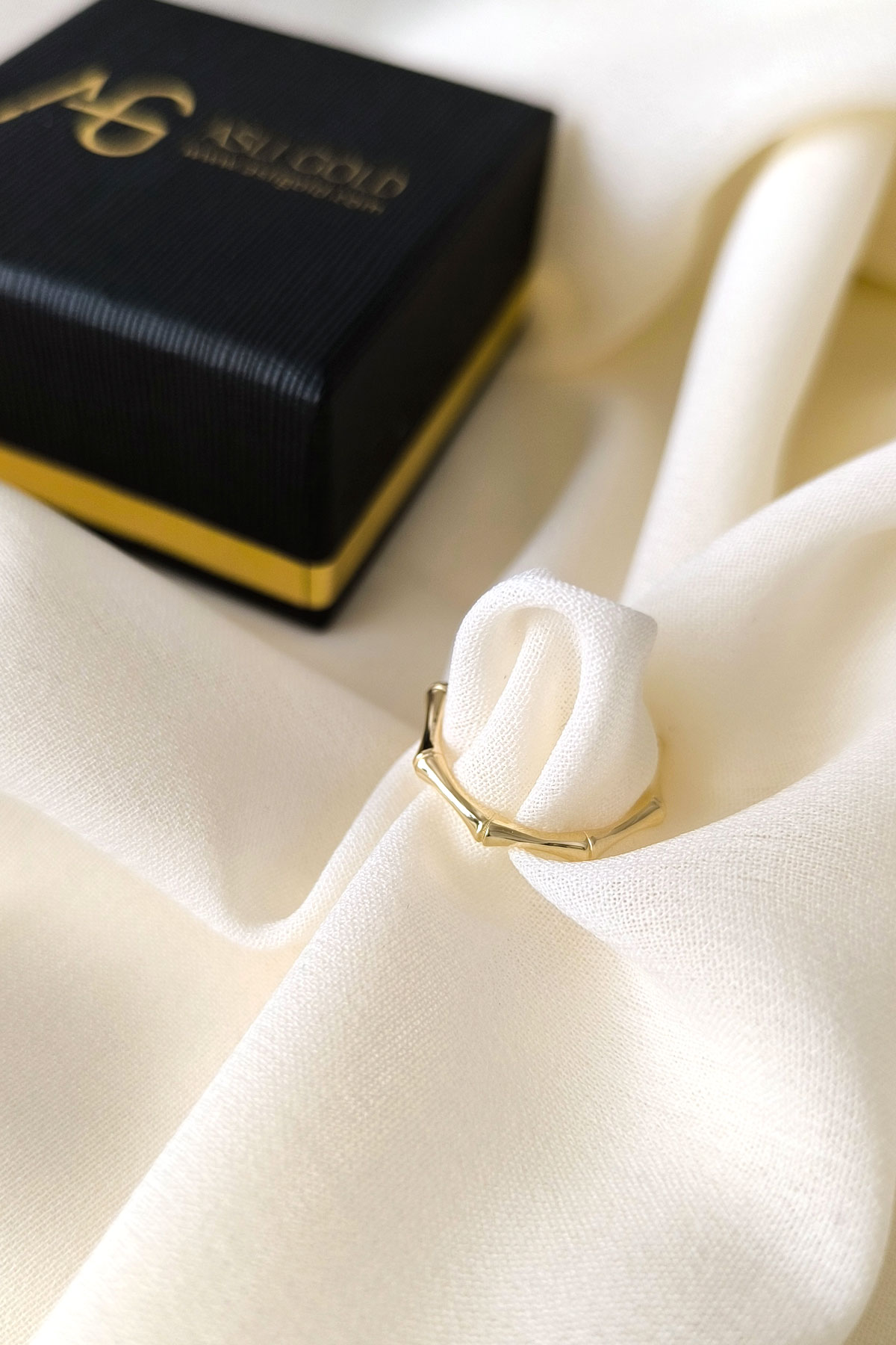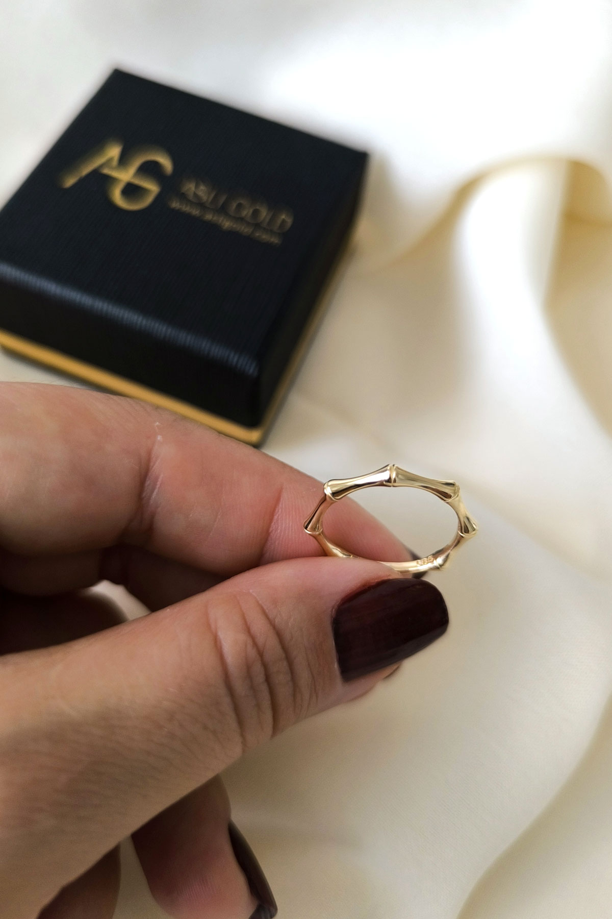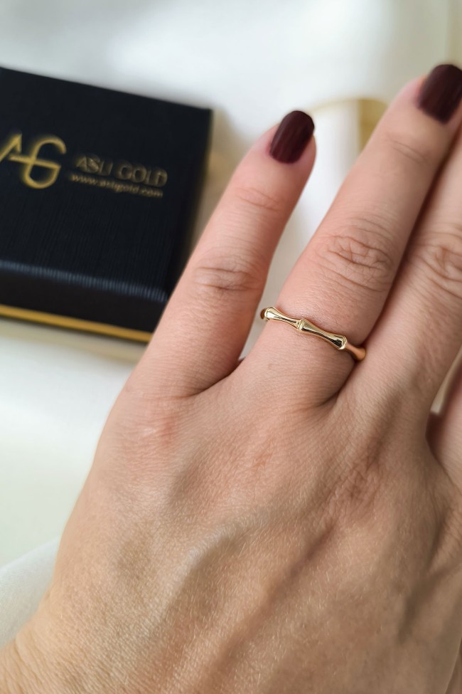 14 ayar sarı altın taşsız spor bambu tasarımıyla günlük kullanıma uygun 2.50 gram ağırlığında minimal tasarım altın kadın yüzük.