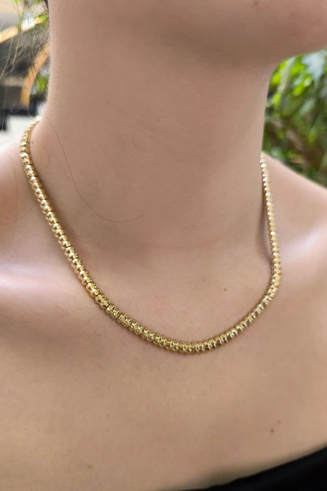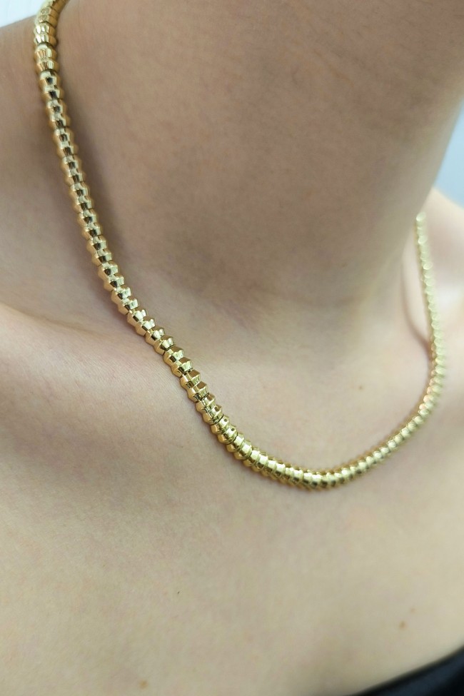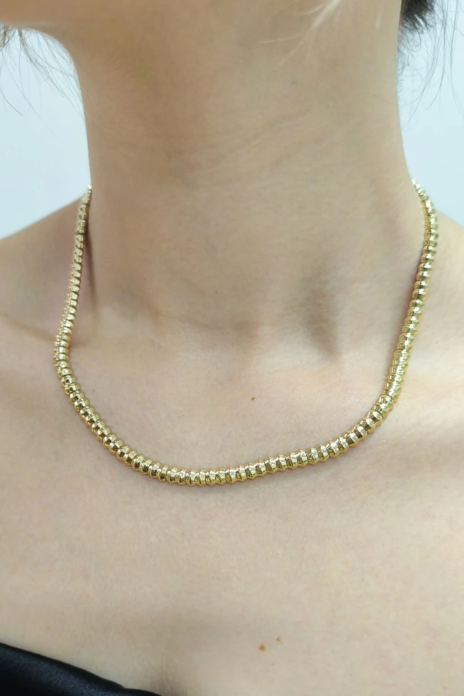 14 Ayar şık ve modern tasarım günlük kullanıma uygun taşsız ışıl ışıl özel bombeli sade tasarım 21.80 gram ağırlığında altın gerdanlık kolye.