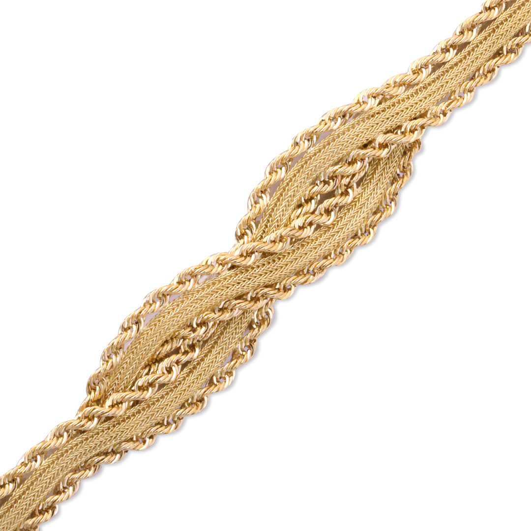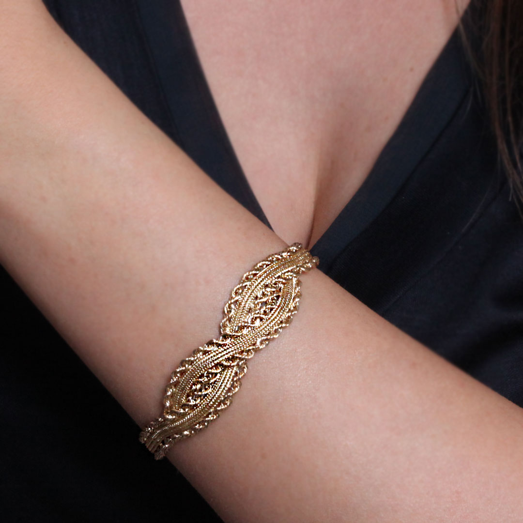 14 Ayar altın 9.95 gram ağırlığında 21 cm boyunda ışıltılı örgü tasarımıyla severek kullanacağınız, modern ve her sezon moda olmayı başaran tüm gün tarzınızda muhteşem bir kombin tamamlayıcı olacak taşsız altın kadın bileklik.