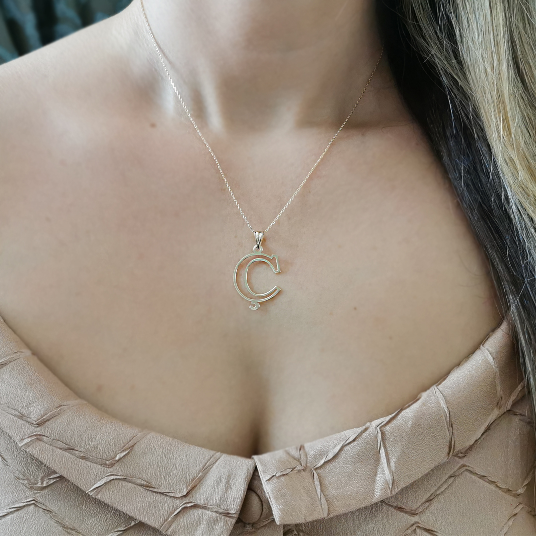14 Ayar Altın Ç Harfi Tasarım Kolye.