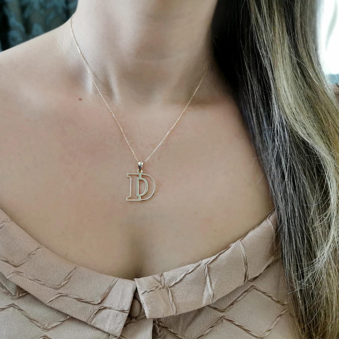 14 Ayar Altın D Harfi Tasarım Kolye.