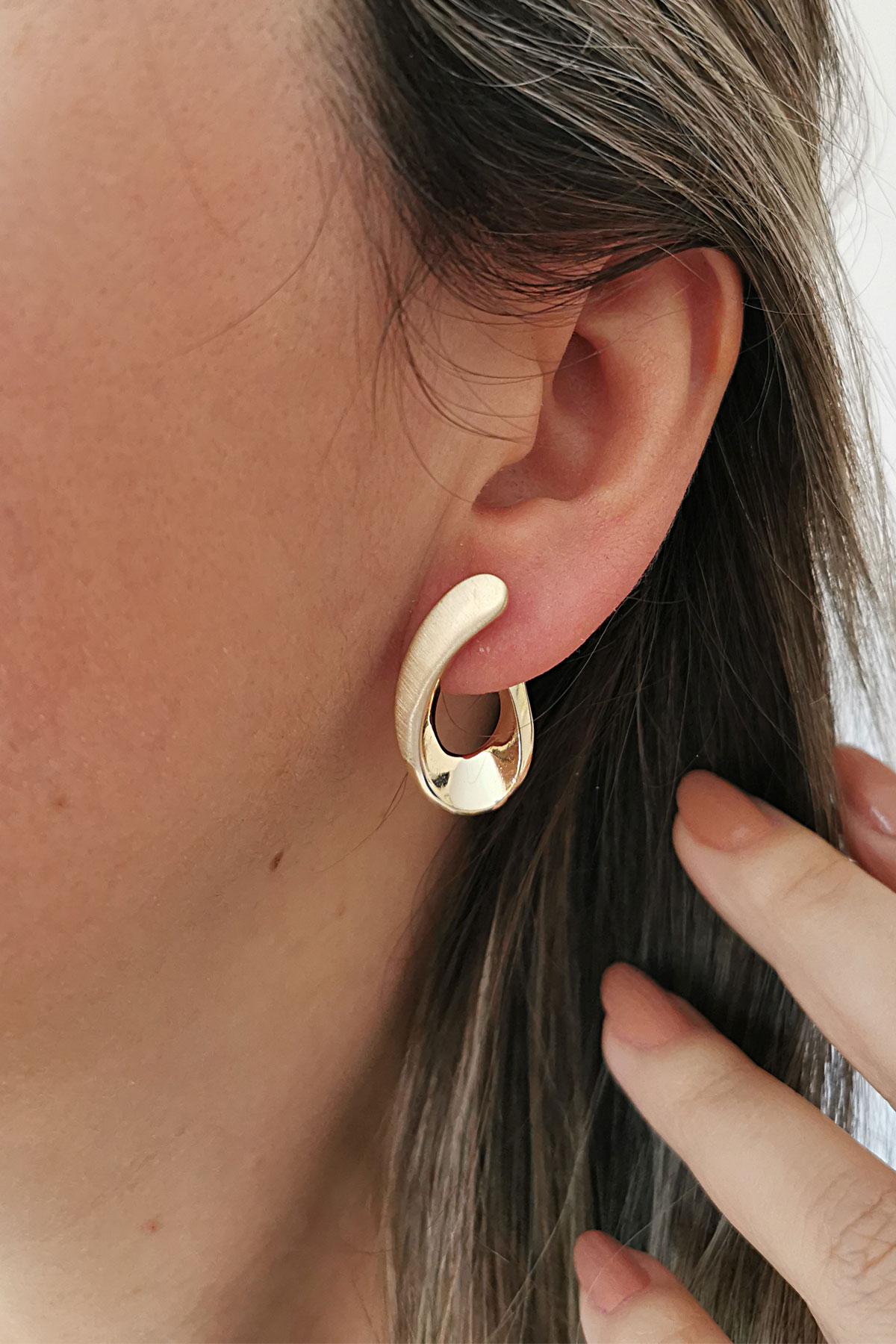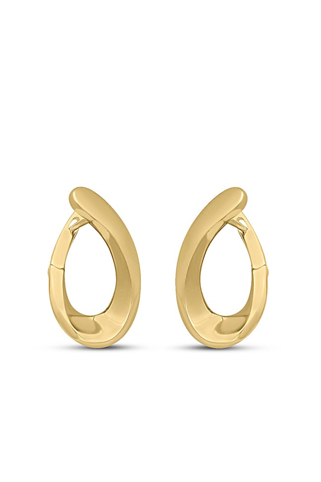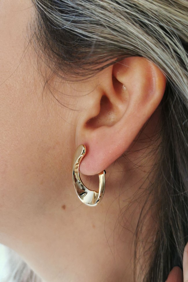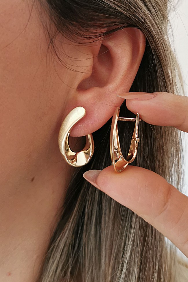 14 Ayar 2.7 cm modern, şık ve farklı tasarımı ile şahane modern bir duruşa da sahip gösterişli ve sade günlük kullanıma uygun 6.80 gram ağırlığında kıvrımlı estetik döngü model taşsız altın küpe.
