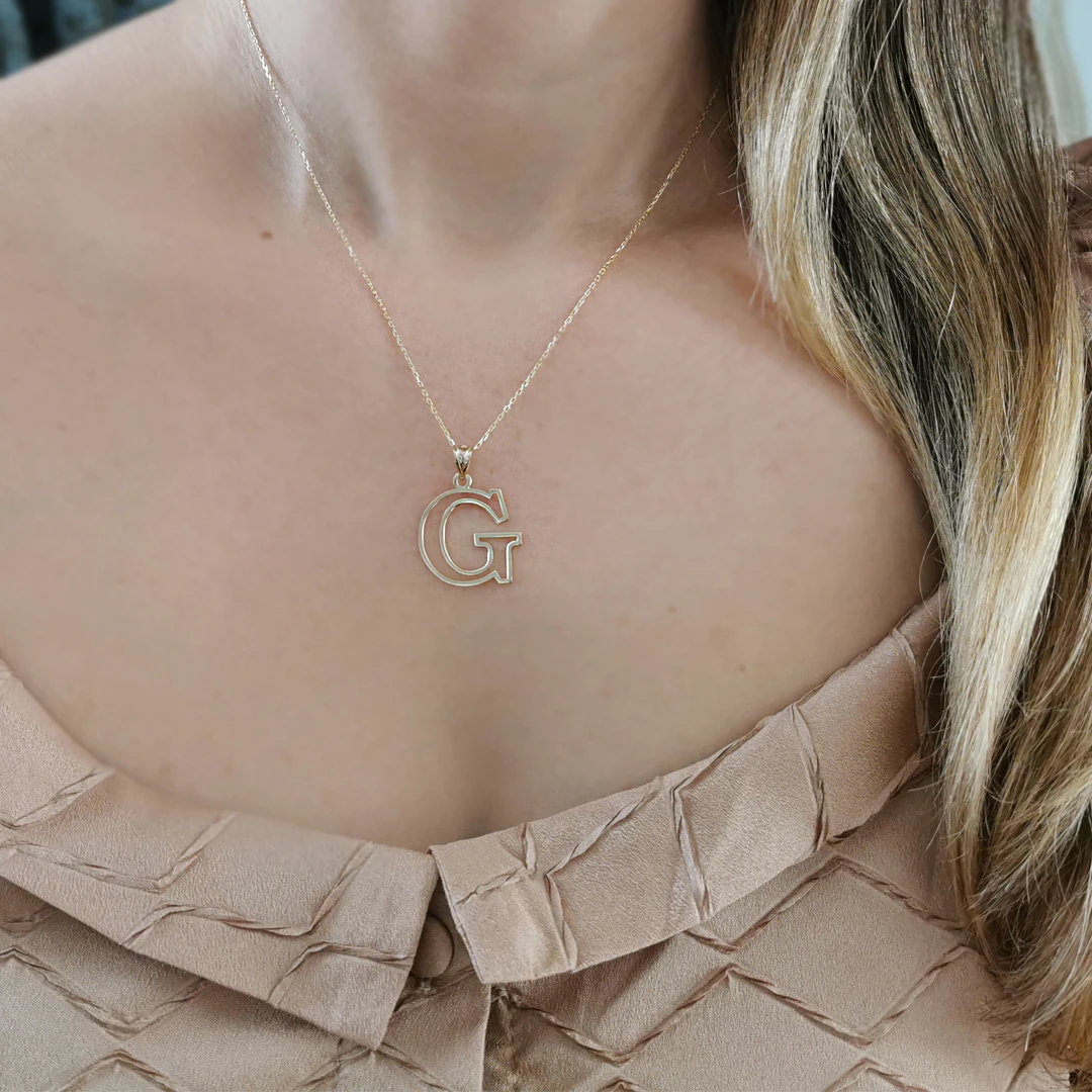 14 Ayar Altın G Harfi Tasarım Kolye.