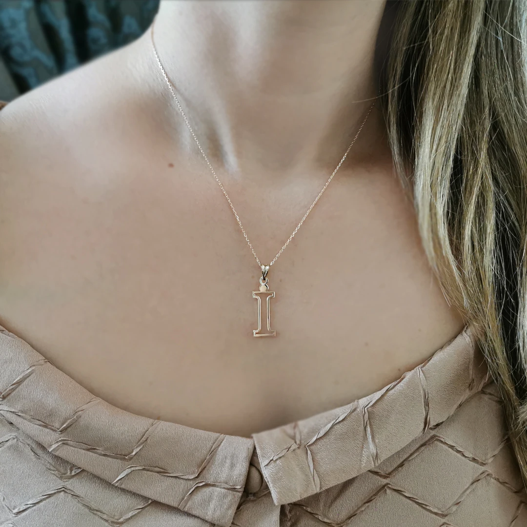 14 Ayar Altın İ Harfi Tasarım Kolye.