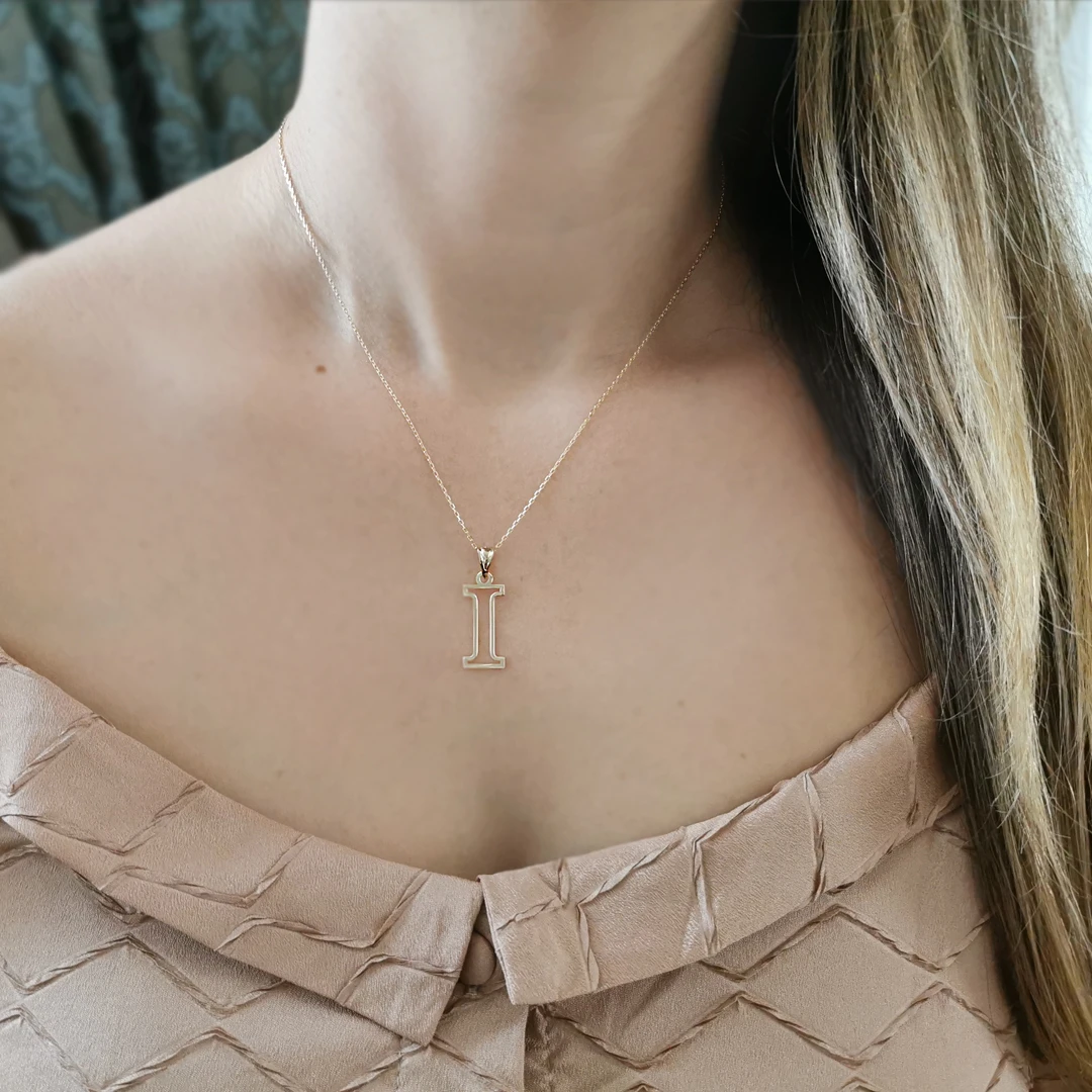 14 Ayar Altın I Harfi Tasarım Kolye.