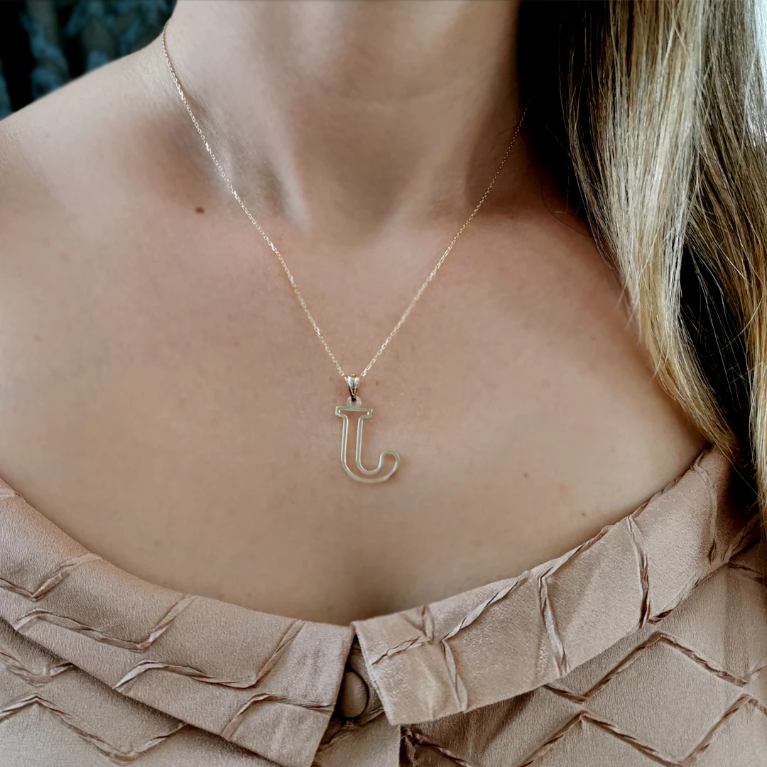 14 Ayar Altın J Harfi Tasarım Kolye.