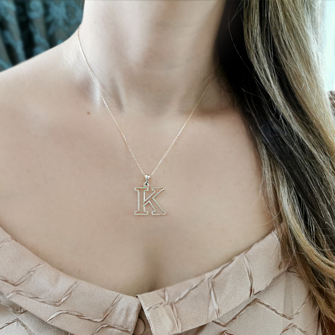 14 Ayar Altın K Harfi Tasarım Kolye. Günlük kullanıma uygun modelimizi farklı ve ışıl ışıl bir zincir modeli olan ince düz model gurmet zincir ile kombinleyerek farklı bir havaya sahip kıldık. Kendinizin yada sevdiklerinizin baş harfini seçerek hoş ve unutulmaz anlam dolu bir hediye satın alabilirsiniz. *Ürünleriniz özel hediye kutusunda garanti belgesi ve ücretsiz sigortalı kargoyla gönderilmektedir, güvenle satın alabilirsiniz.