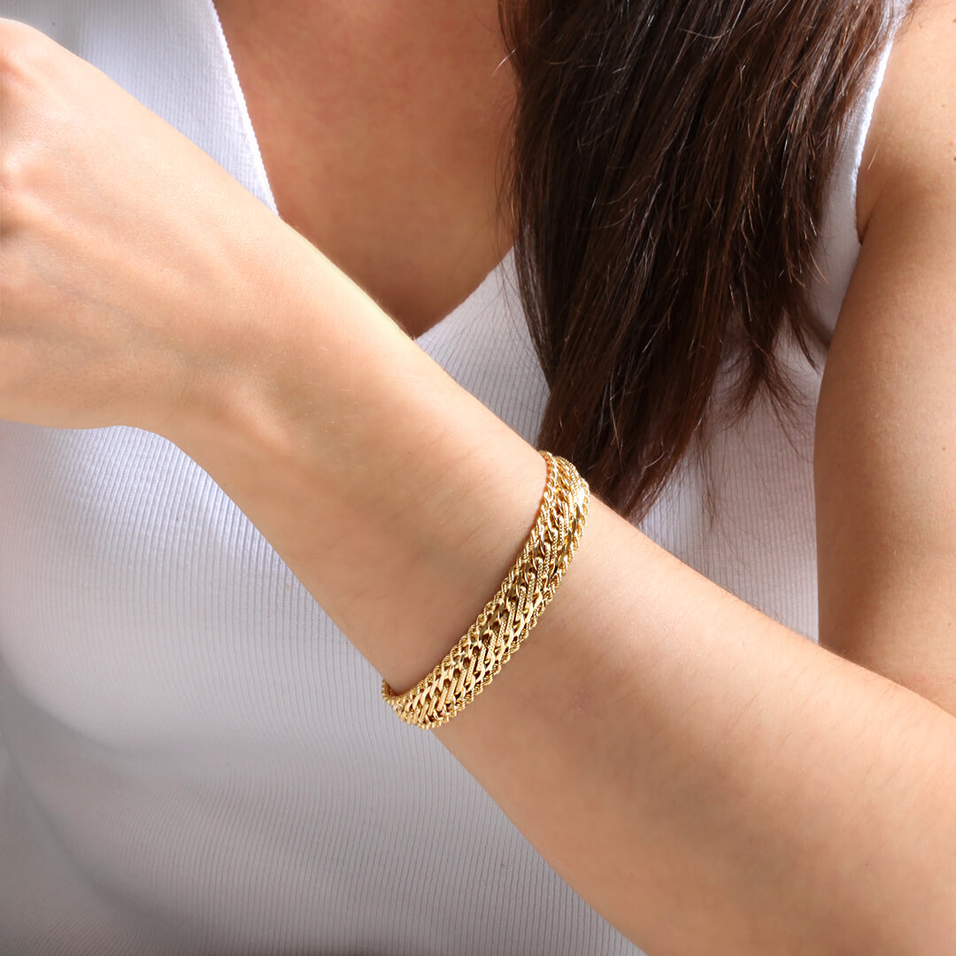 14 Ayar altın 11.2 gram ağırlığında 19 cm boyunda tasarımıyla severek kullanacağınız, modern ve her sezon moda olmayı başarmış tarzınıza muhteşem uyum sağlayacak taşsız altın kadın bileklik.