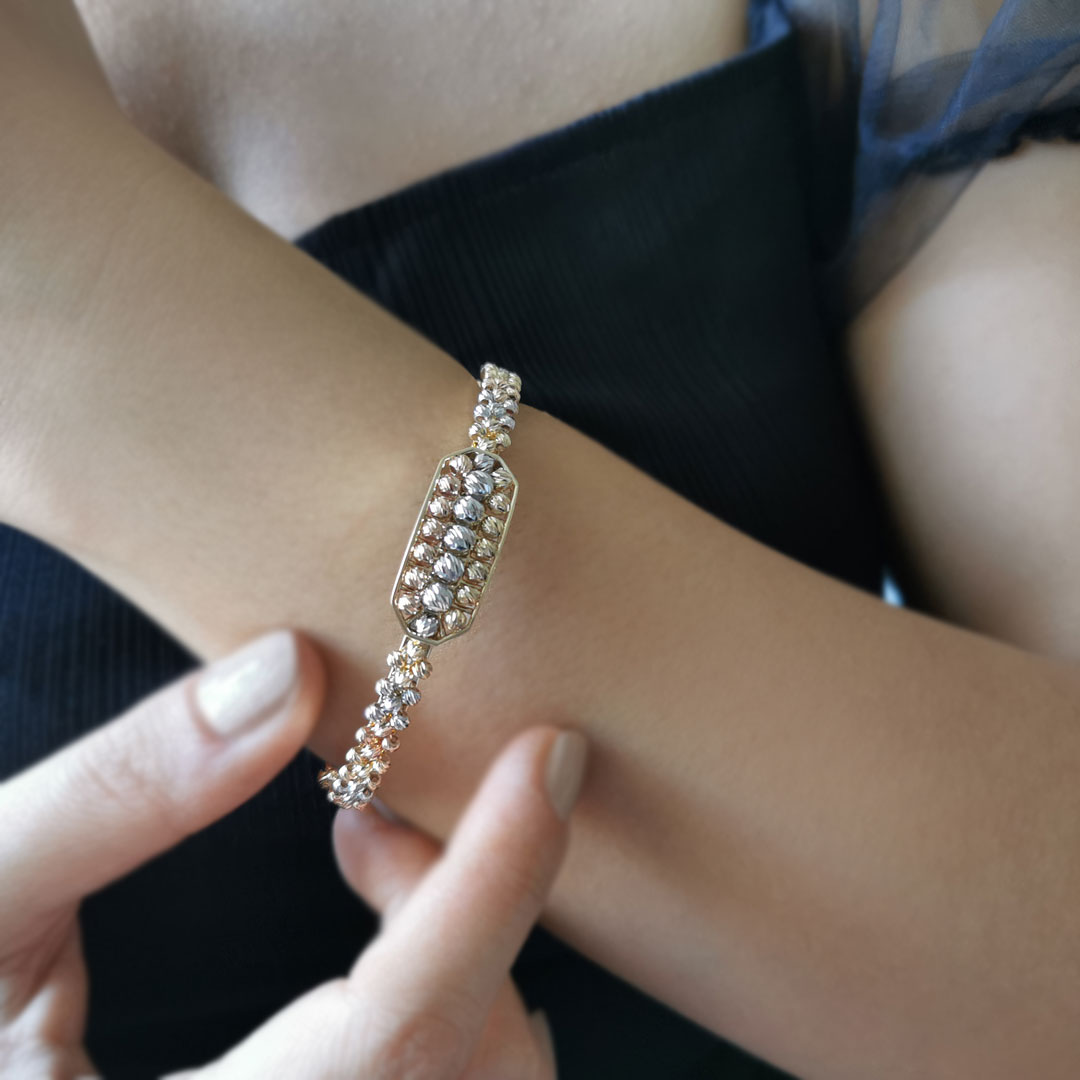 12,65 Gram Ağırlığında 14 Ayar Dorika Top Detaylı Altın Fantazi Işıl Işıl Duruşa Sahip Nevio Kelepçe / Bilezik.