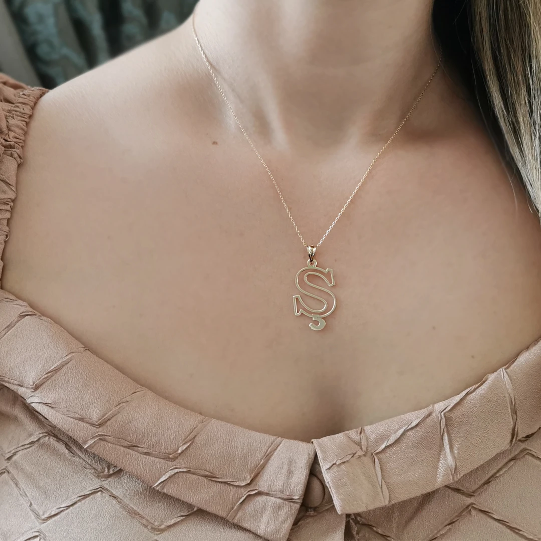 14 Ayar Altın Ş Harfi Tasarım Kolye.