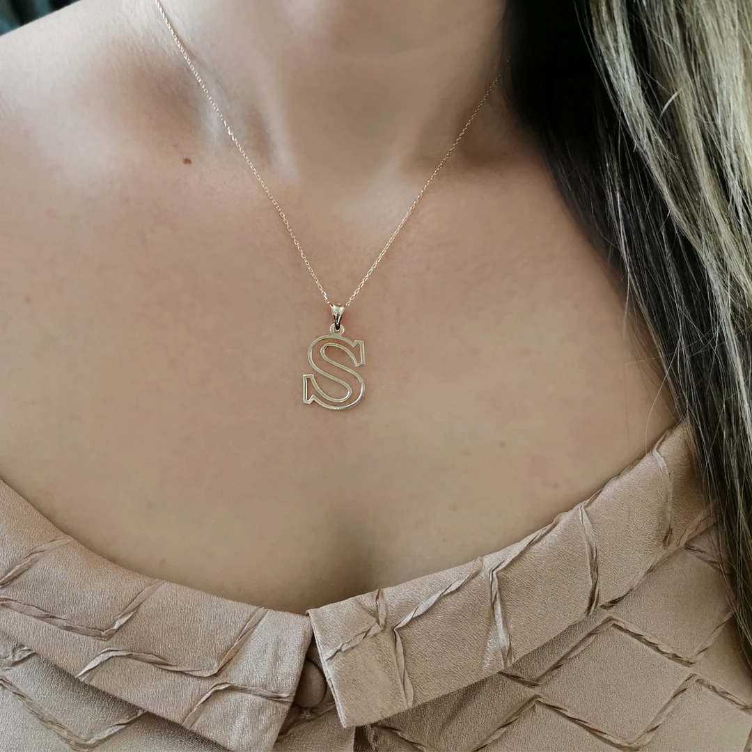 14 Ayar Altın S Harfi Tasarım Kolye. Günlük kullanıma uygun modelimizi farklı ve ışıl ışıl bir zincir modeli olan ince düz model gurmet zincir ile kombinleyerek farklı bir havaya sahip kıldık. Kendinizin yada sevdiklerinizin baş harfini seçerek hoş ve unutulmaz anlam dolu bir hediye satın alabilirsiniz. *Ürünleriniz özel hediye kutusunda garanti belgesi ve ücretsiz sigortalı kargoyla gönderilmektedir, güvenle satın alabilirsiniz.