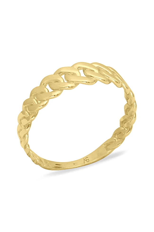 14 ayar sarı altın günlük kullanıma uygun 1.85 gram ağırlığında altın taşsız spor süzme zincir model kadın yüzük.