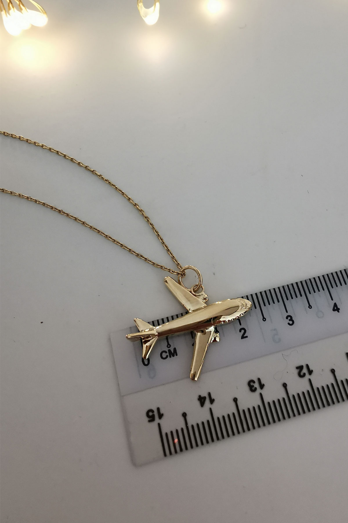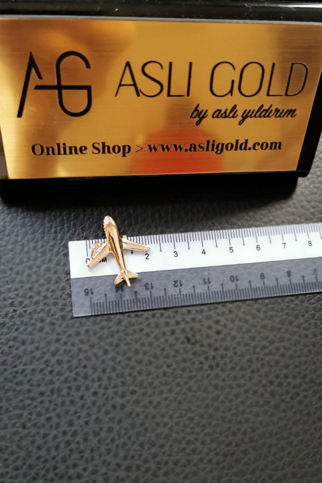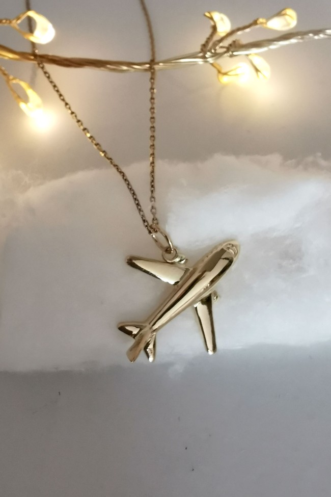 14 Ayar Altın Taşsız Uçak Kolye.