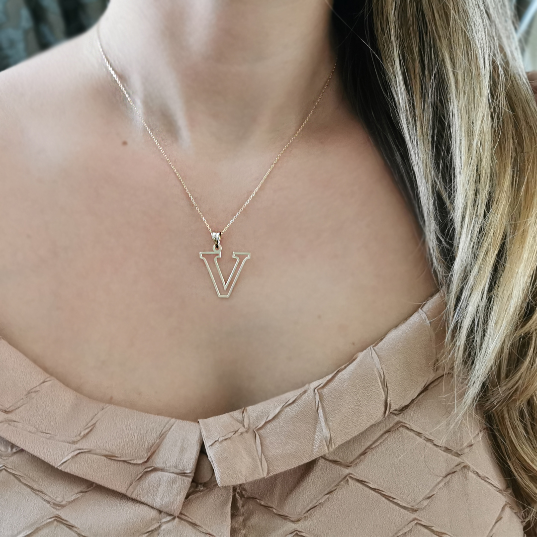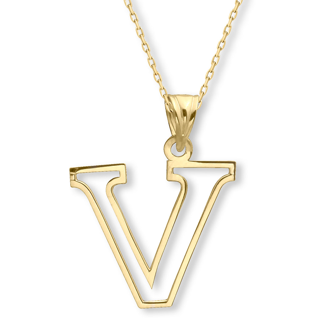 14 Ayar Altın V Harfi Tasarım Kolye.