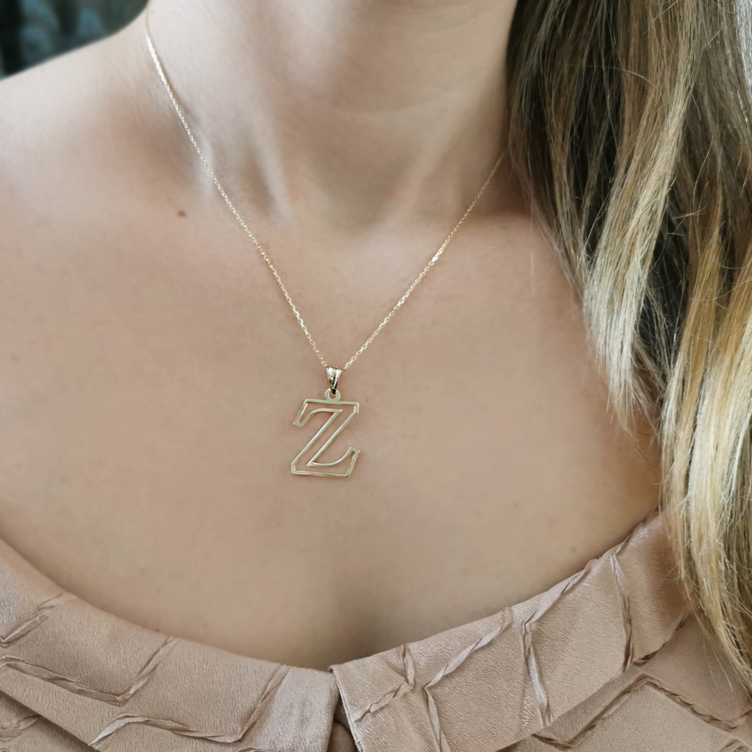 14 Ayar Altın Z Harfi Tasarım Kolye. Günlük kullanıma uygun modelimizi farklı ve ışıl ışıl bir zincir modeli olan ince düz model gurmet zincir ile kombinleyerek farklı bir havaya sahip kıldık. Kendinizin yada sevdiklerinizin baş harfini seçerek hoş ve unutulmaz anlam dolu bir hediye satın alabilirsiniz. *Ürünleriniz özel hediye kutusunda garanti belgesi ve ücretsiz sigortalı kargoyla gönderilmektedir, güvenle satın alabilirsiniz.