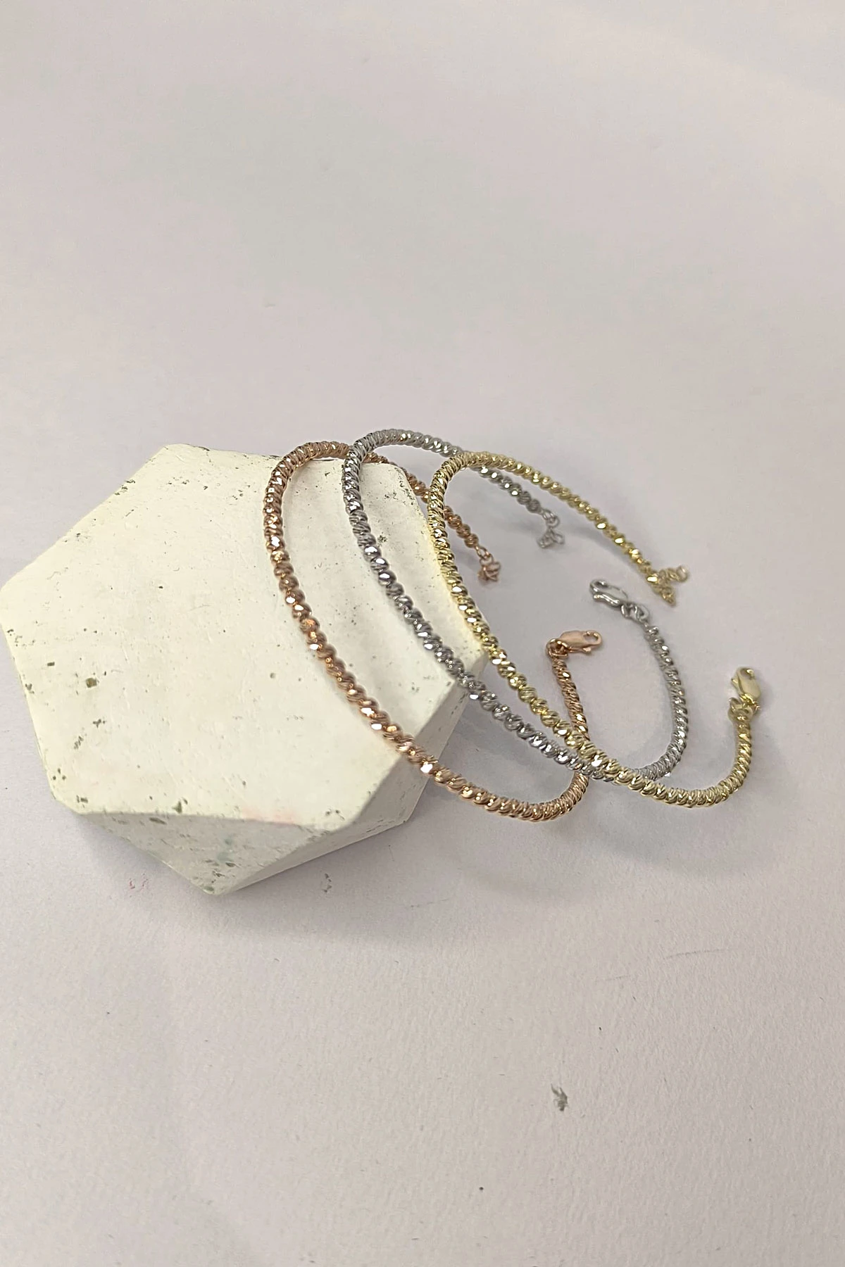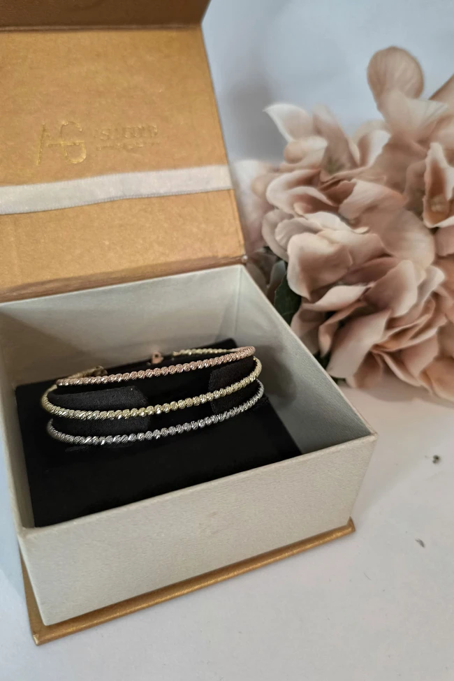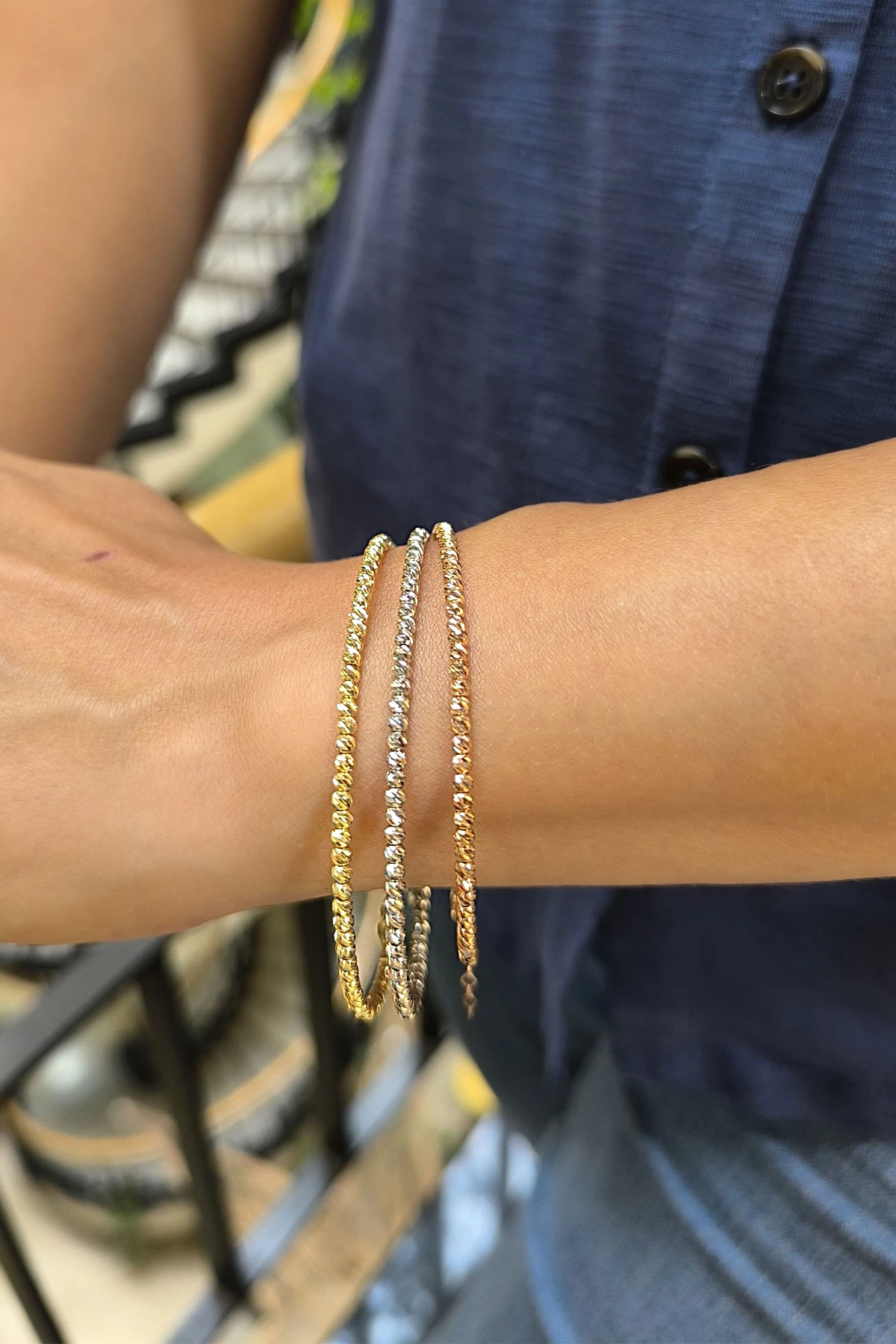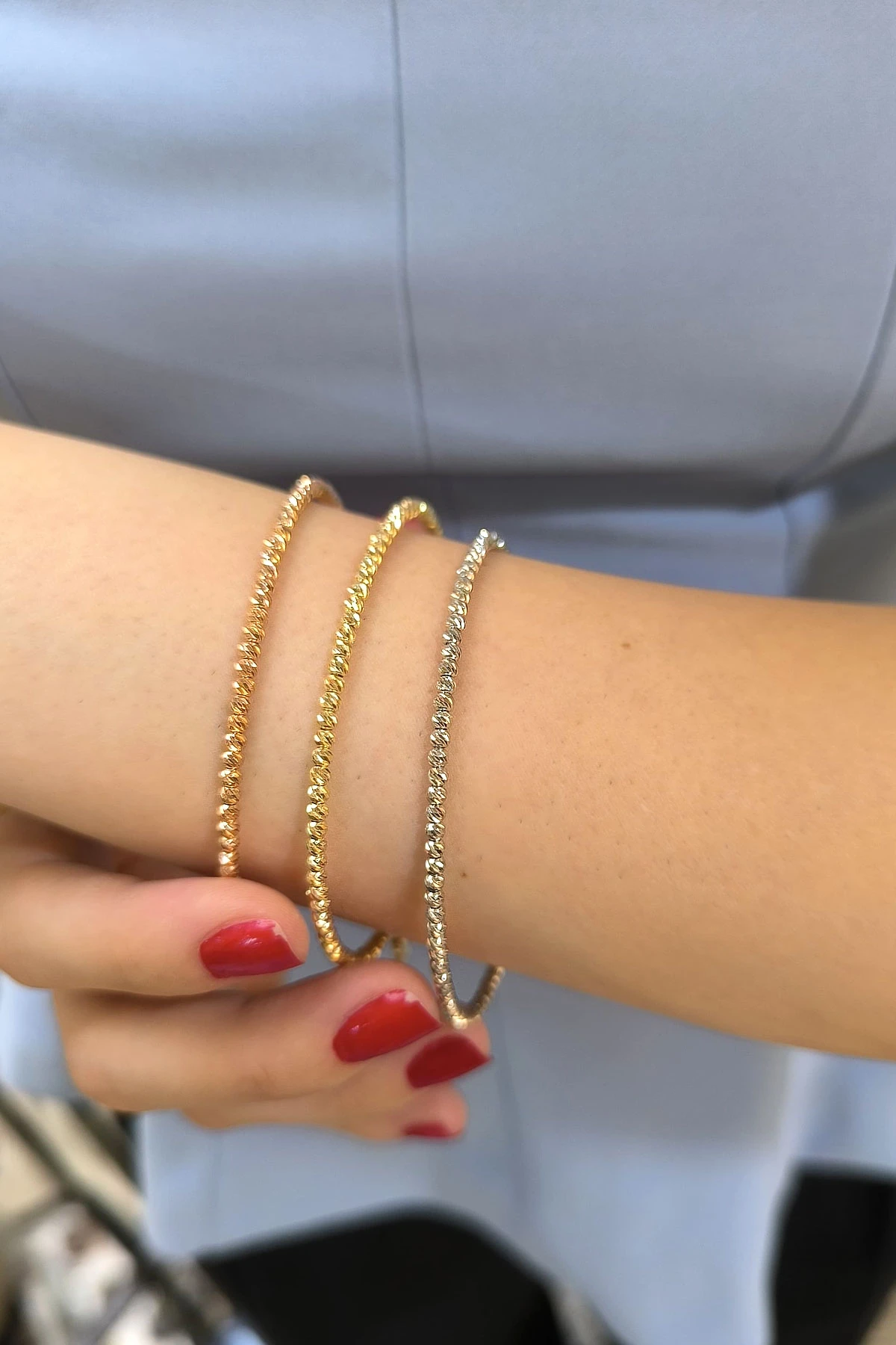 14 Ayar 3 farklı altın rengi seçeneği ile satın alabileceğiniz tek sıra ışıl ışıl dorika altın bilezik. Sevdiklerinize özel günlerde hediye edebileceğiniz muhteşem bir model.