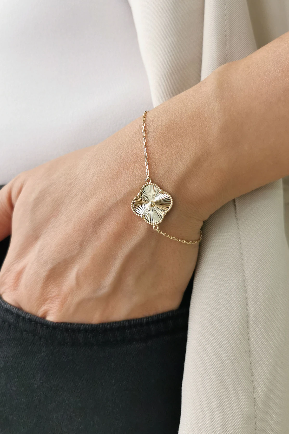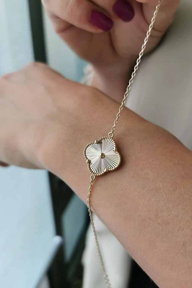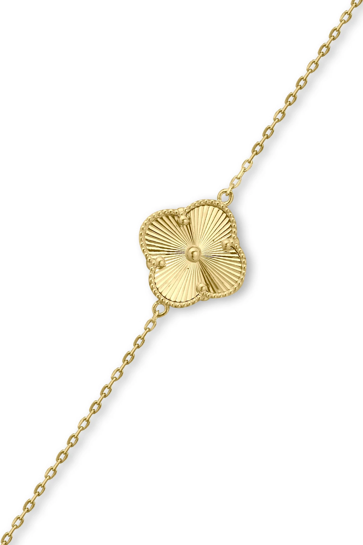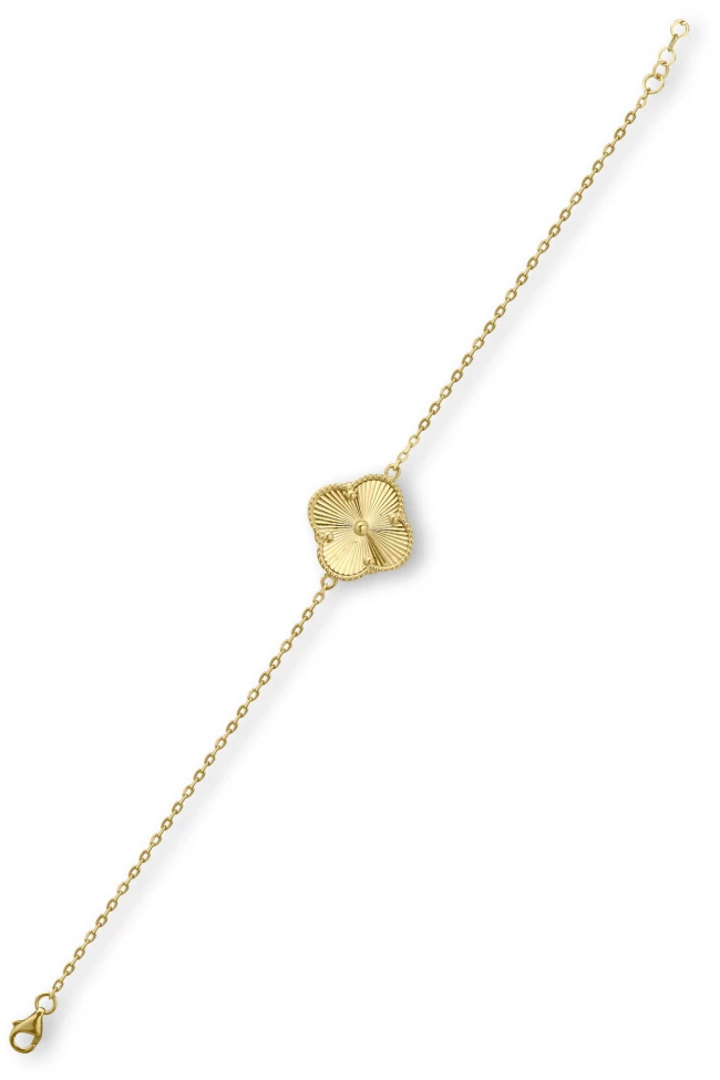 14 Ayar spor ve havalı tasarım günlük kullanıma uygun taşsız ışıl ışıl kalemli tek yoncalı model 3.40 gram ağırlığında altın yonca kadın bileklik.