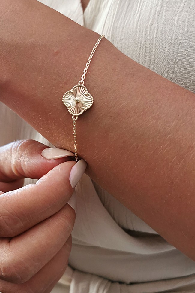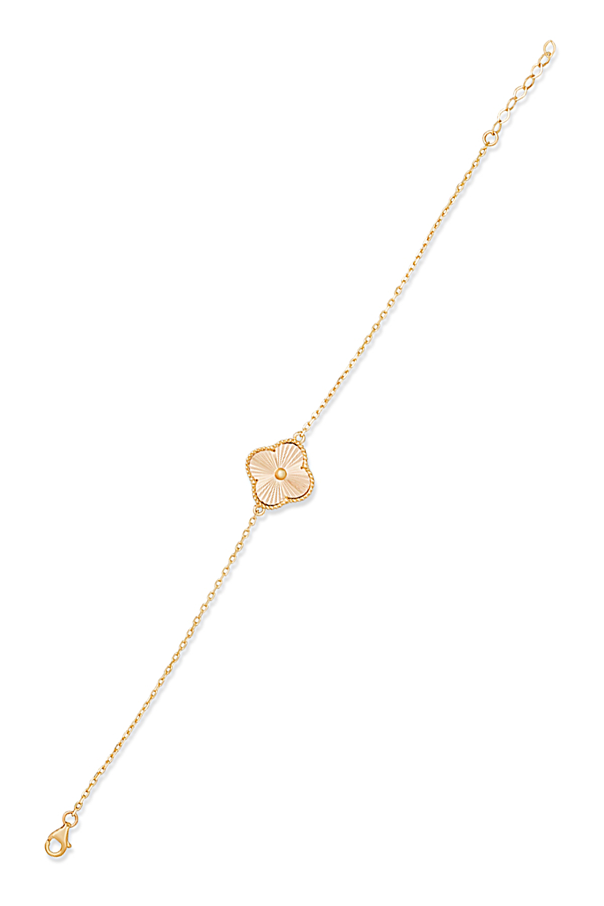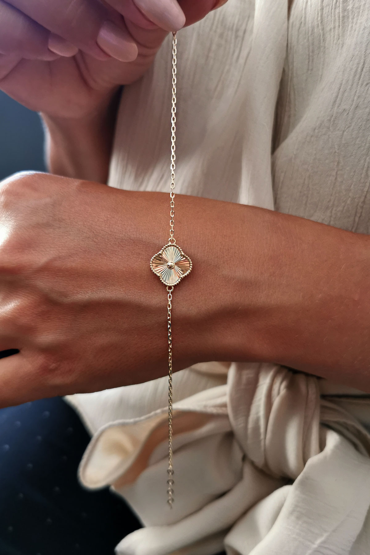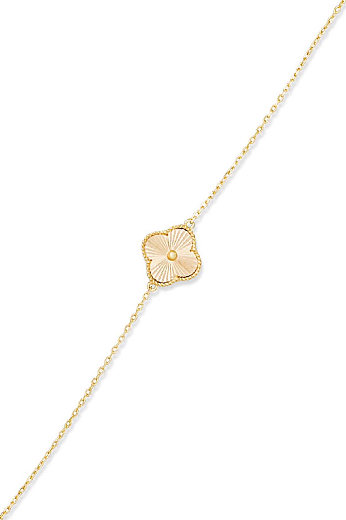 14 Ayar taşsız modern tasarımı ile spor duruşa da sahip günlük kullanıma uygun 2.80 gram ağırlığında tasarım model altın tekli yonca bileklik.