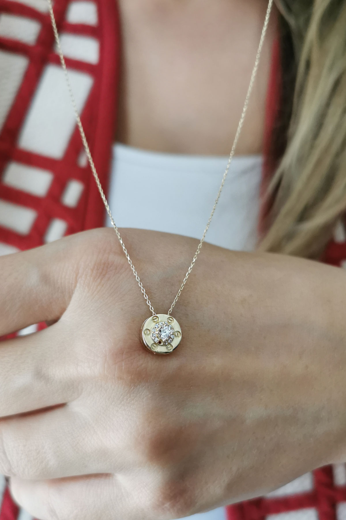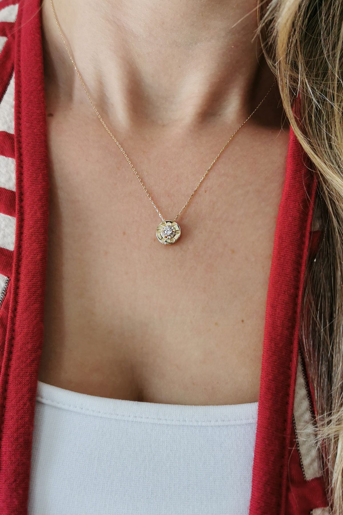2.00 Gram Ağırlığında 1 Cm Boyutunda Taşlı Minimal Altın Zarif Tasarım Tektaş Sade Kolye.