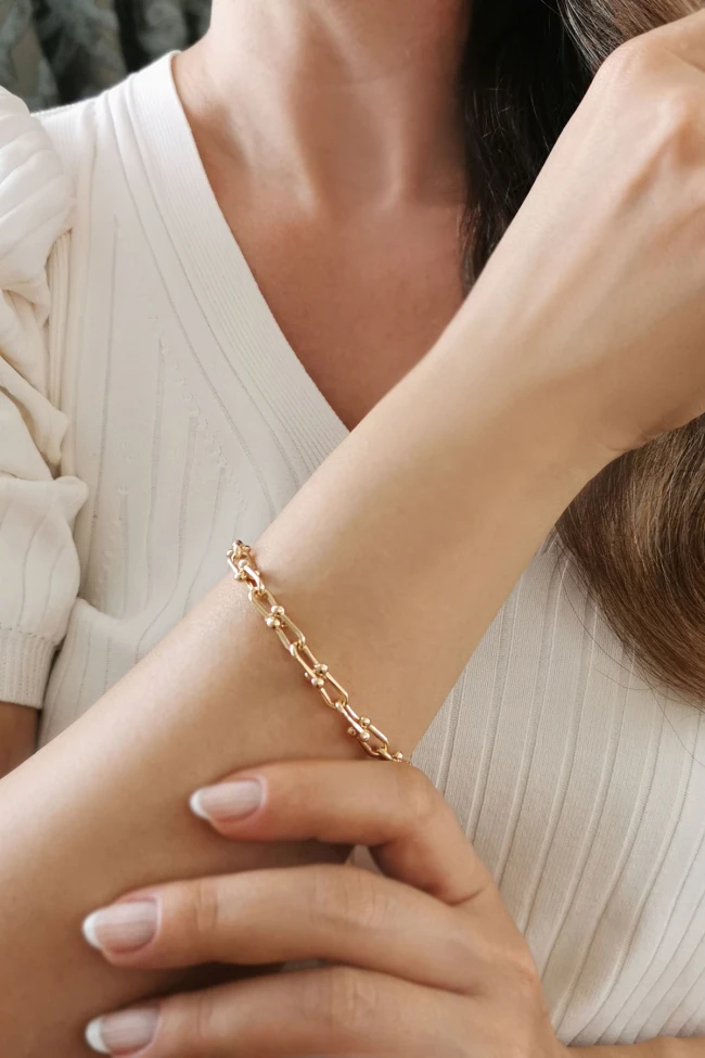 4.60 Gram Ağırlığında 22 Cm Spor Ve Modern Trend Tasarımlı Blok Detaylı Gündüzden Geceye Severek Kullanacağınız Gösterişli 14 Ayar Altın Tasarım Bileklik.