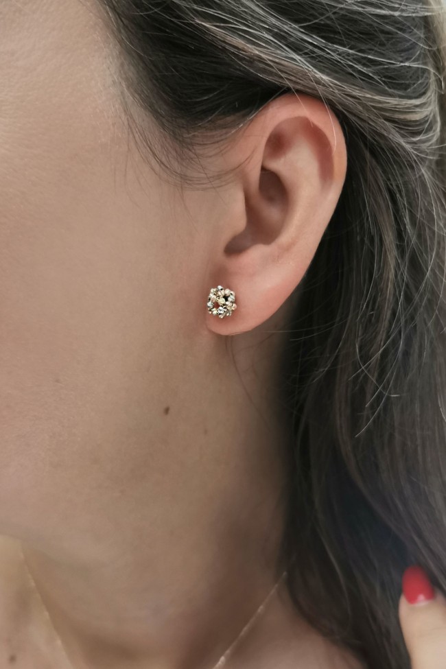 1.90 gram 14 ayar altın taşsız dorika top tasarım küpe.