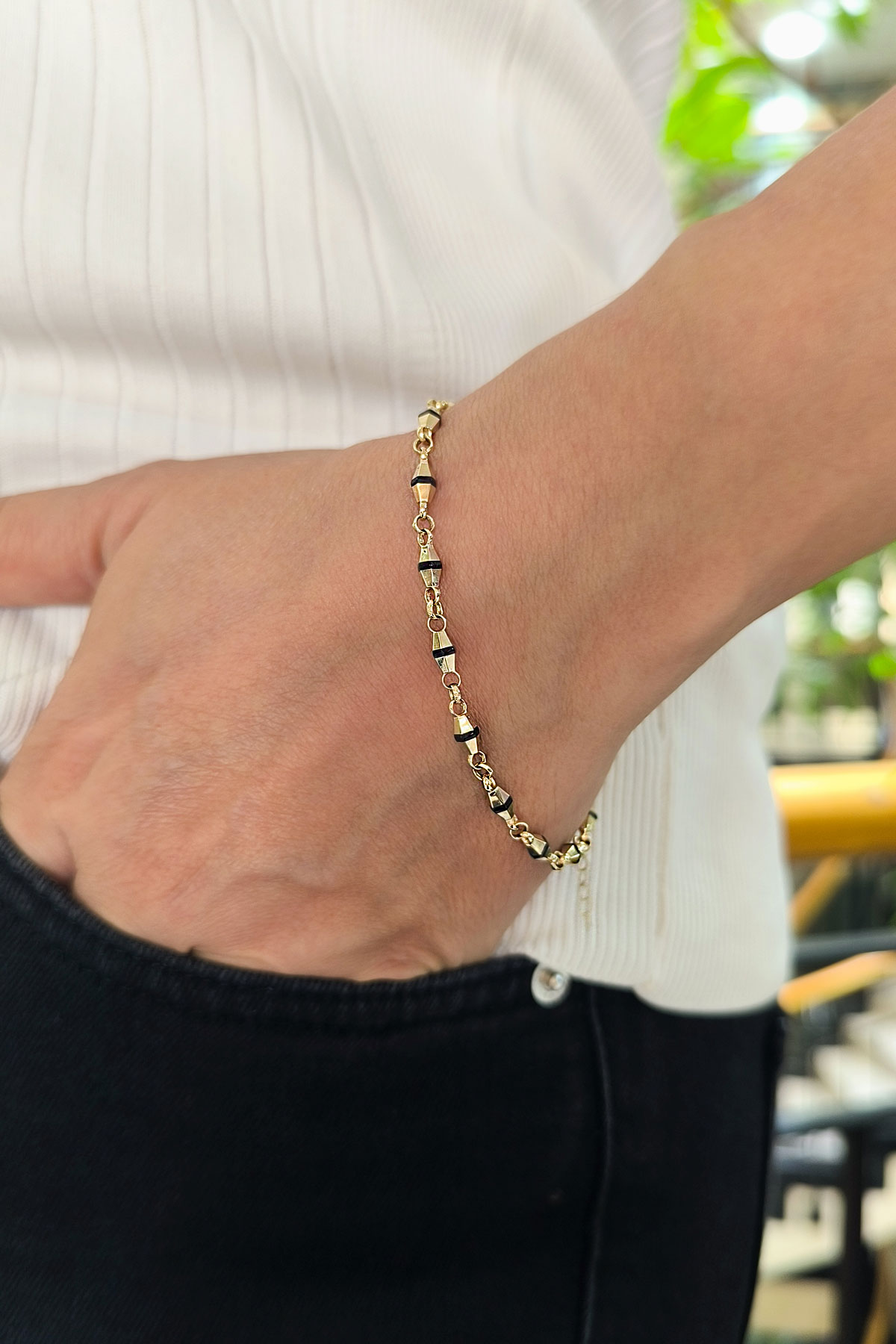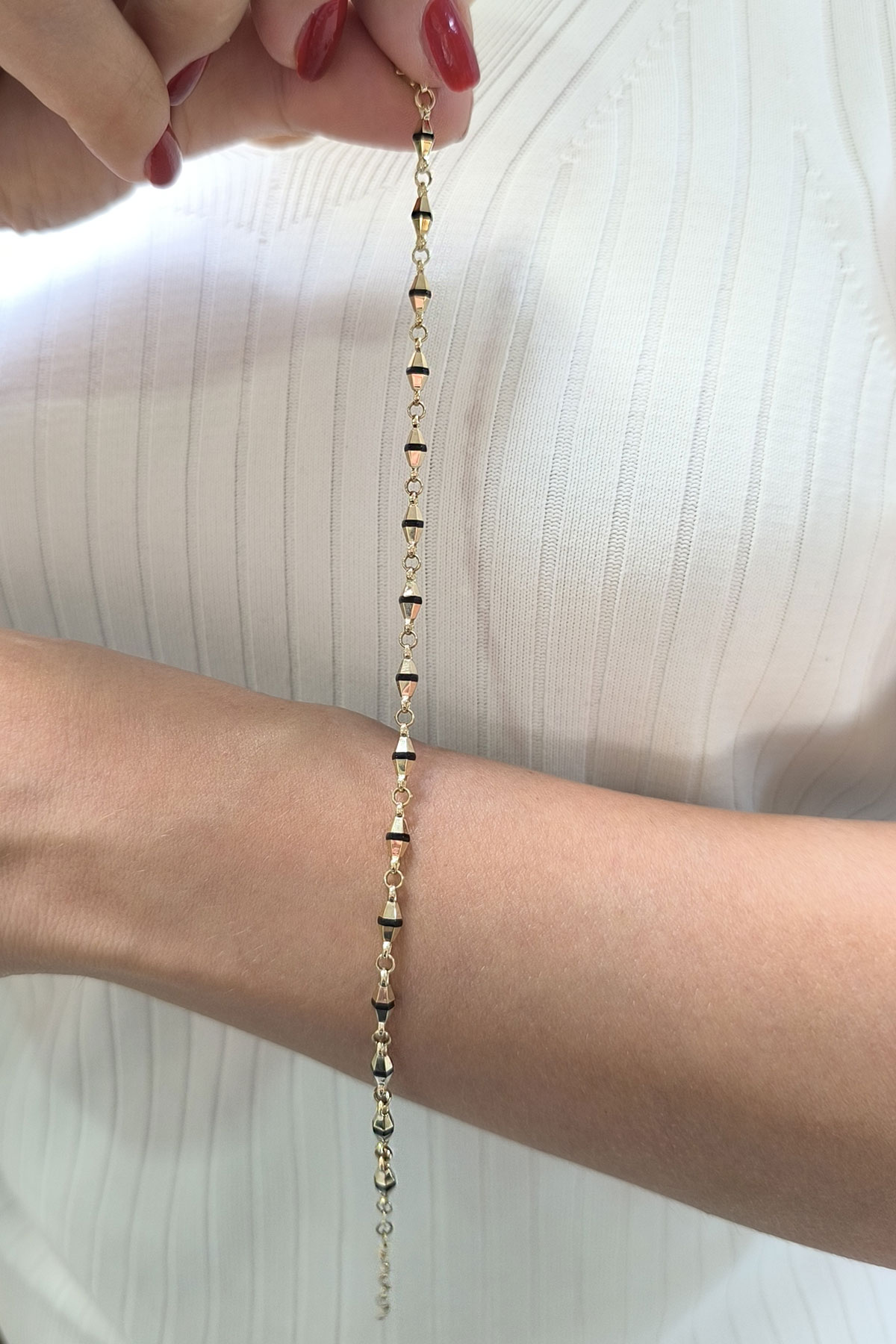 14 Ayar 19+2 cm şık ve modern tasarım günlük kullanıma uygun taşsız ışıl ışıl özel trend tasarım 4.35 gram ağırlığında altın bileklik.