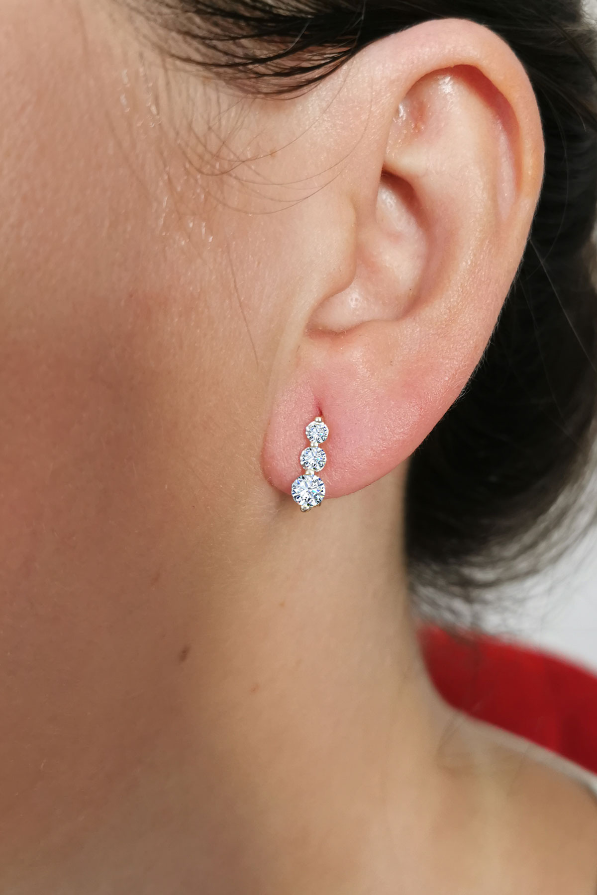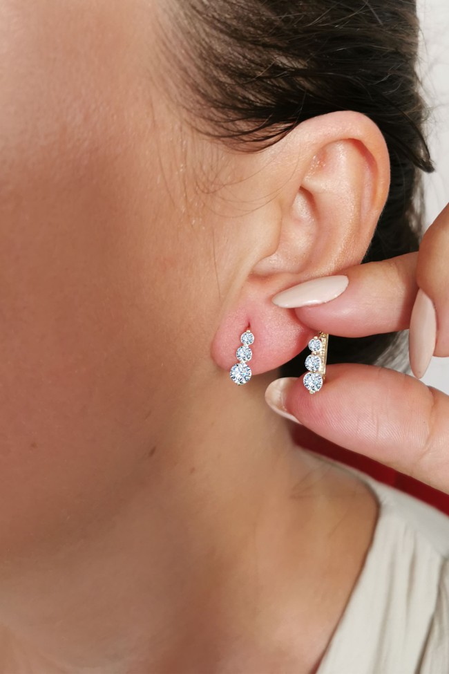 14 Ayar üç taş model spor tasarım ve şık duruşa sahip günlük kullanıma uygun 1.85 gram ağırlığında altın minimal küpe..