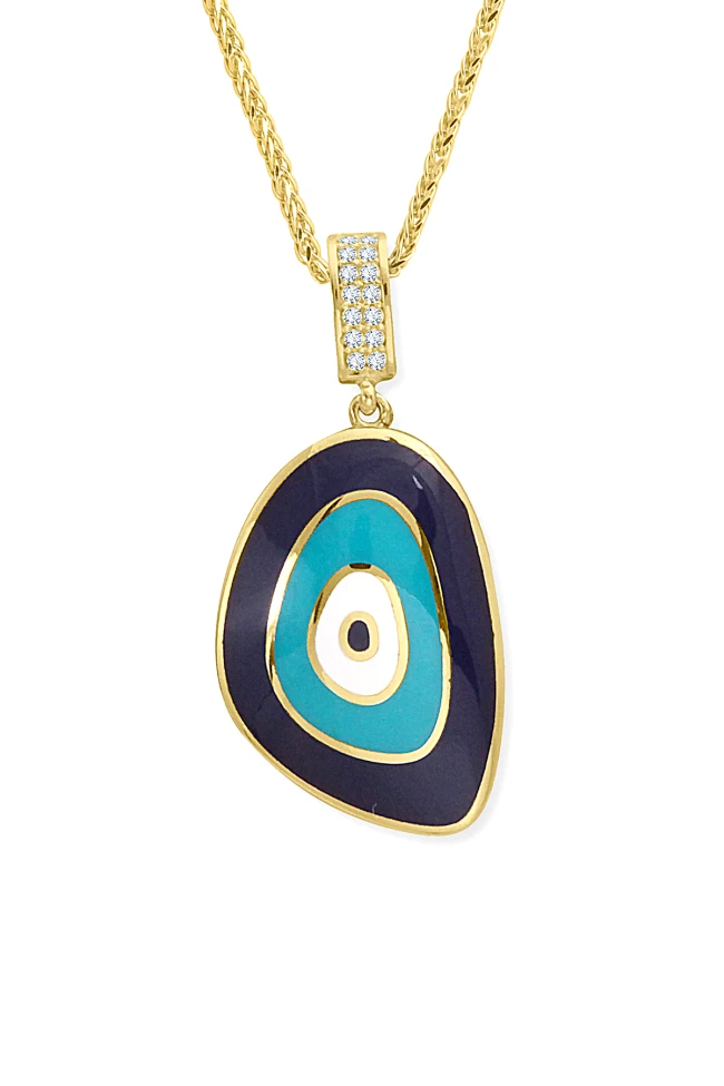 14 Ayar Altın Lacivert Turkuaz Mineli 6.20 Gr Ağırlığında Charm Kilitli Göz Kolye.