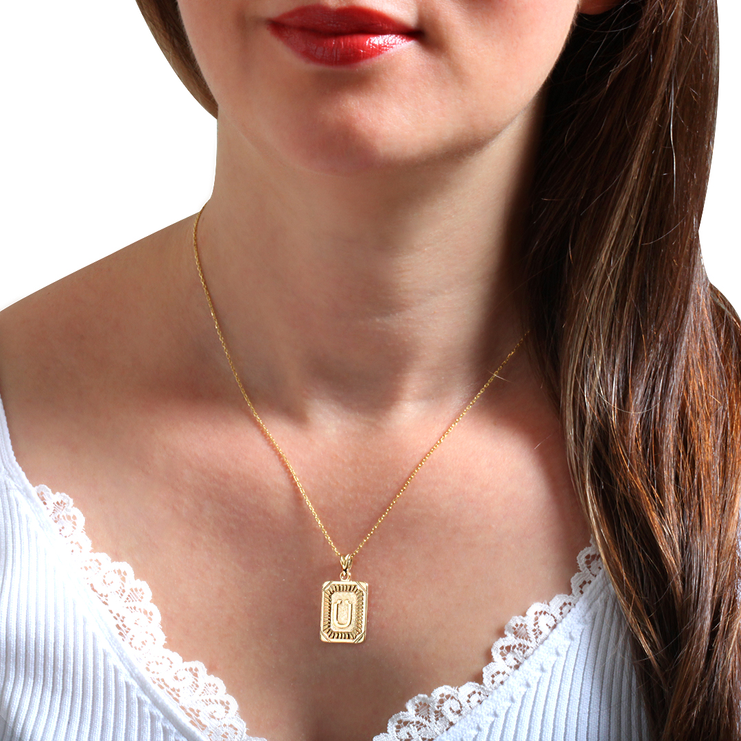14 Ayar Altın Ü Harfi Pres Kolye.