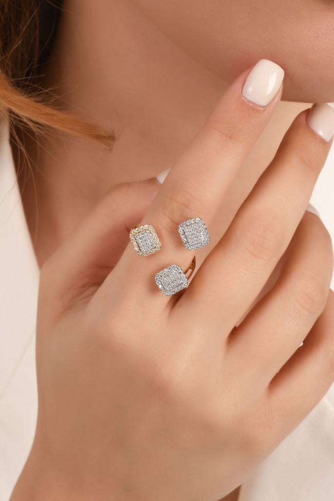 0.60 Ct. F/VS-SI kalite yuvarlak pırlanta zarif duruşu ile tüm dikkatleri üzerine toplayacak üç başlı dörtgen model tasarım pırlanta yüzük. Sevdiklerinize özel günlerinde armağan edebileceğiniz harika bir seçim. Model Firma Sertifikalıdır.