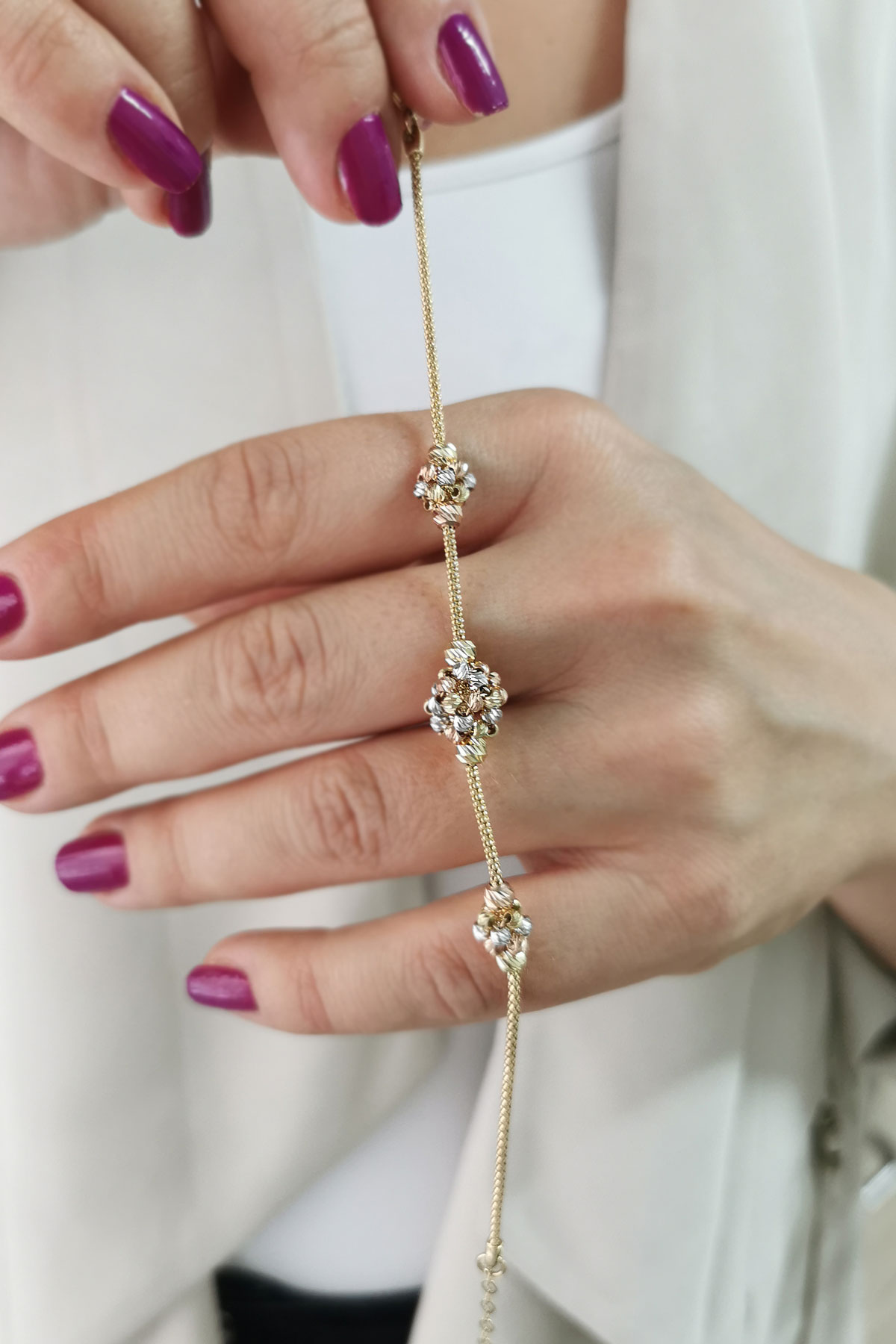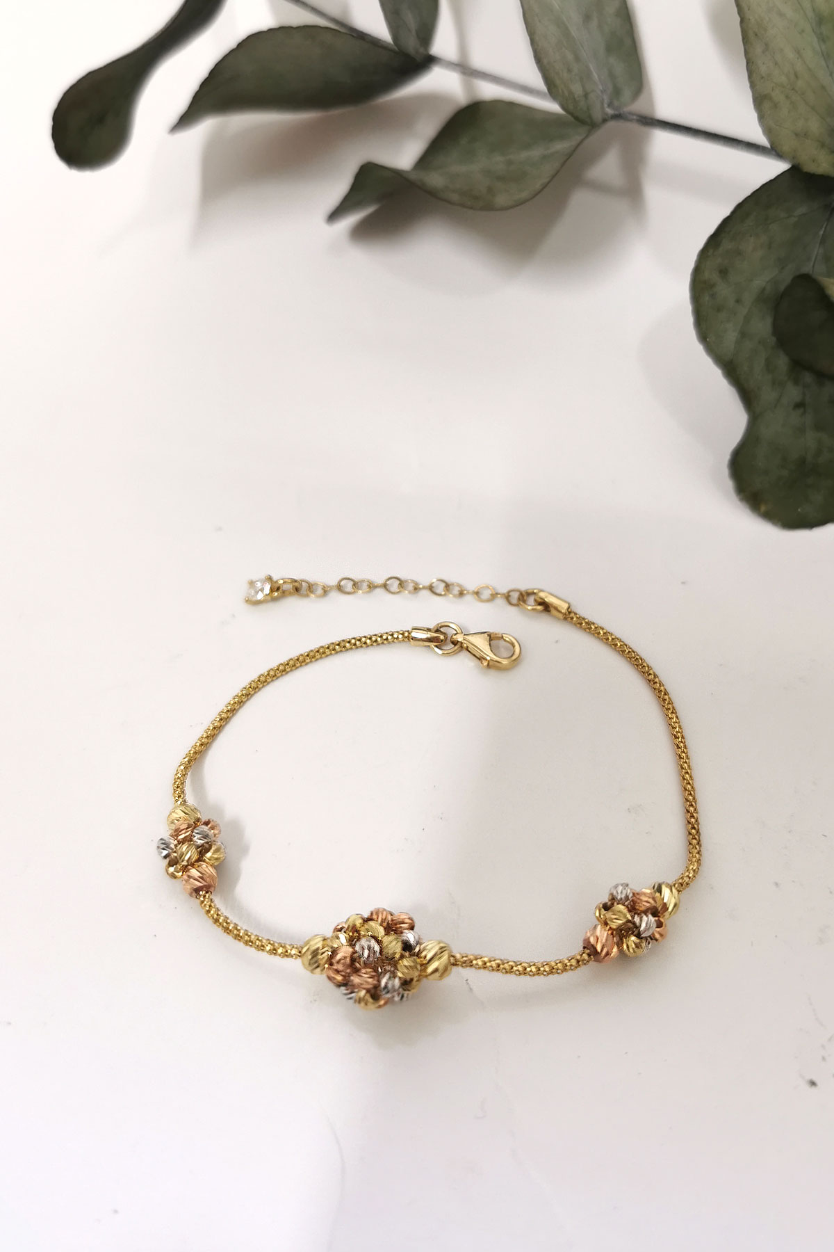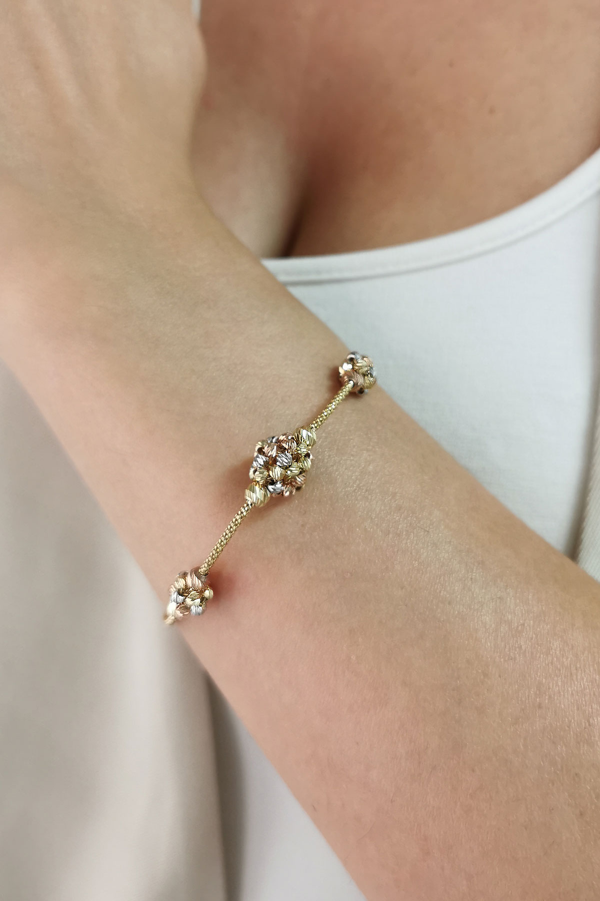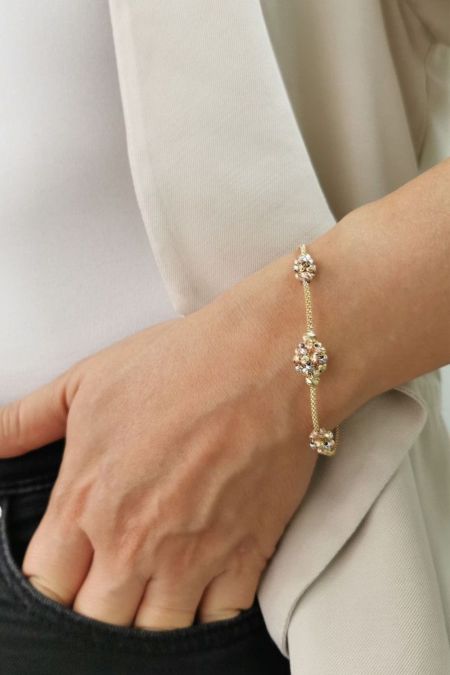 5.30 Gram Ağırlığında 14 Ayar 3 Renkli Dorika Top Model El İşçiliği İle Özel Olarak Üretilen Altın Tasarım Bileklik.