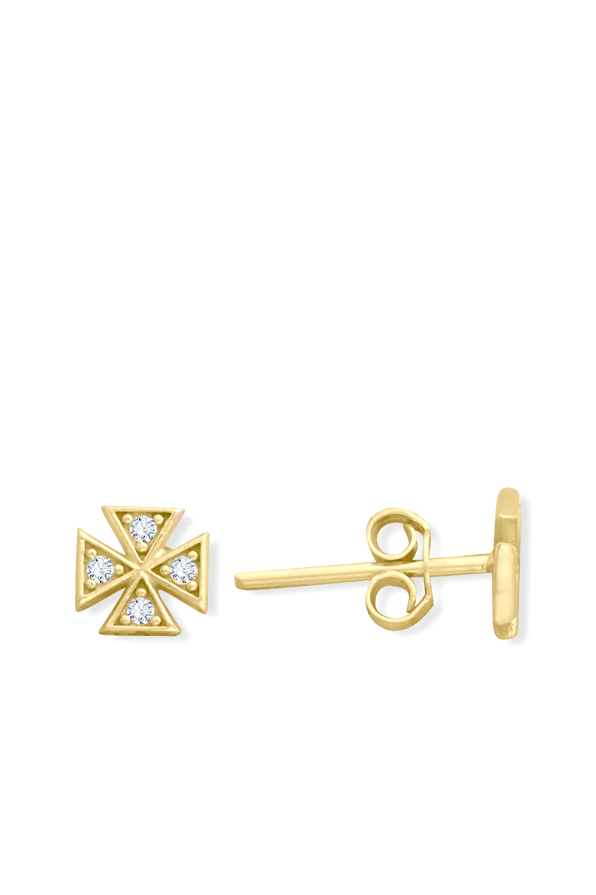 0.6 Cm boyunda zirkon taş detaylı minimal ışıl ışıl 14 ayar 1.10 gr ağırlığında altındörtlü üçgen model vidalı küpe.