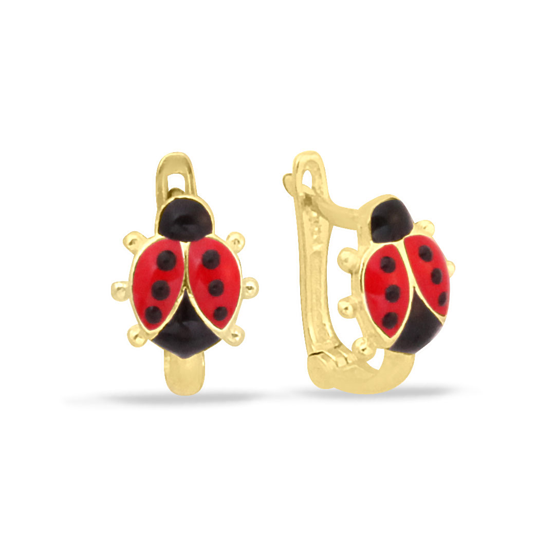 1.3 Cm boyunda mineli uğur böcekli günlük kullanıma uygun ışıl ışıl 14 ayar 1.70 gr ağırlığında altın çocuk küpesi.