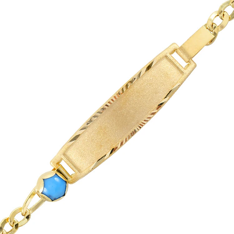15 Cm boyunda günlük olarak da kullanıma uygun sağlam ezme gurmet zincir detaylı 14 ayar 1.90 gr ağırlığında altın firuze taş detaylı çocuk künyesi.