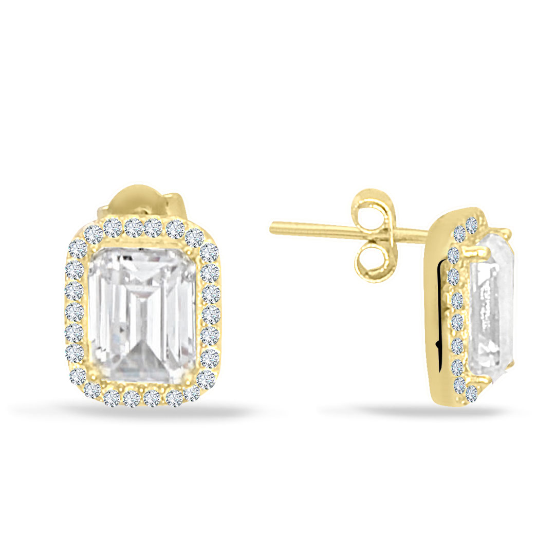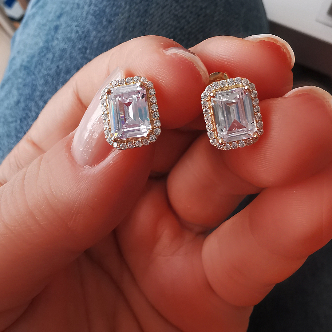 14 Ayar zirkon baget taş detaylı ışıl ışıl ve sempatik duruşa sahip günlük kullanıma uygun 2.90 gram ağırlığında 1 Cm boyunda spor altın küpe.