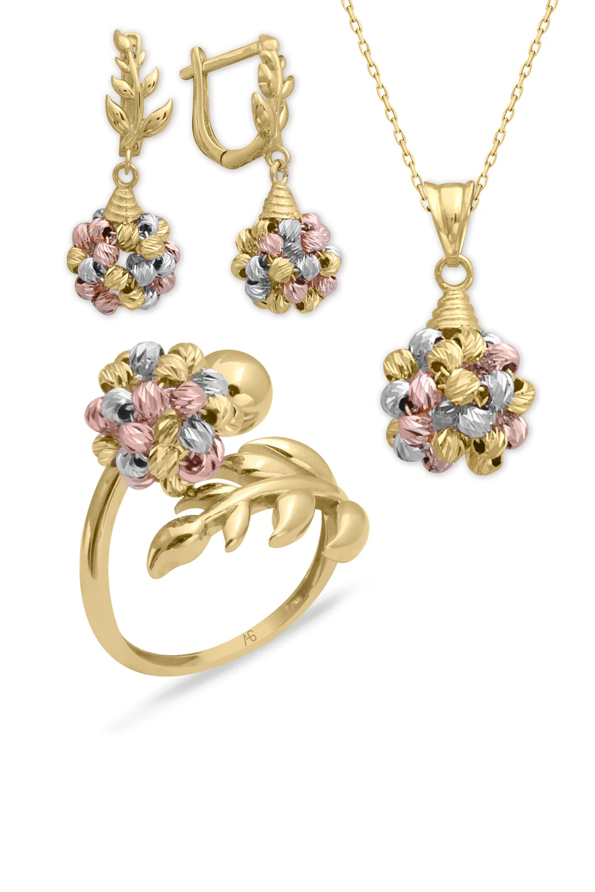 14 Ayar taşlı ışıl ışıl ve modern, spor tasarımı ile zarif duruşa sahip spor bir model olarak da günlük kullanıma uygun 12.00  gram ağırlığındaaltın dorika üçlü set.
